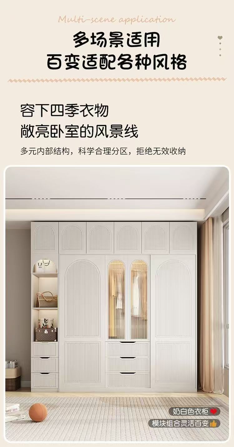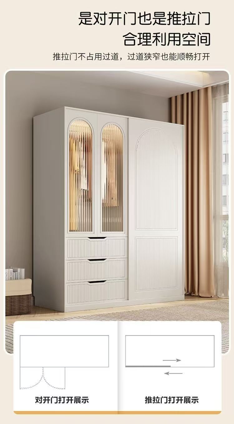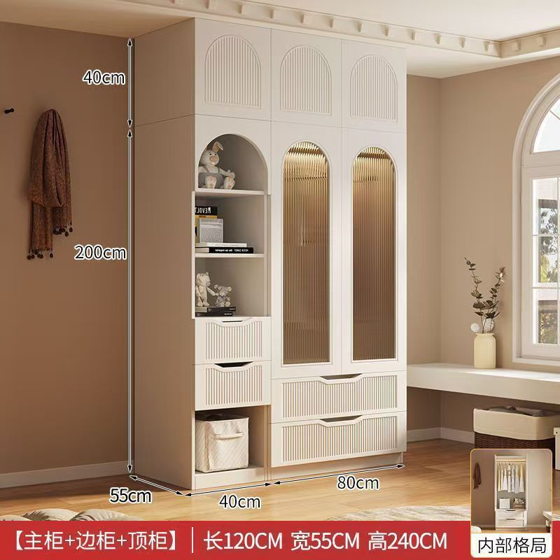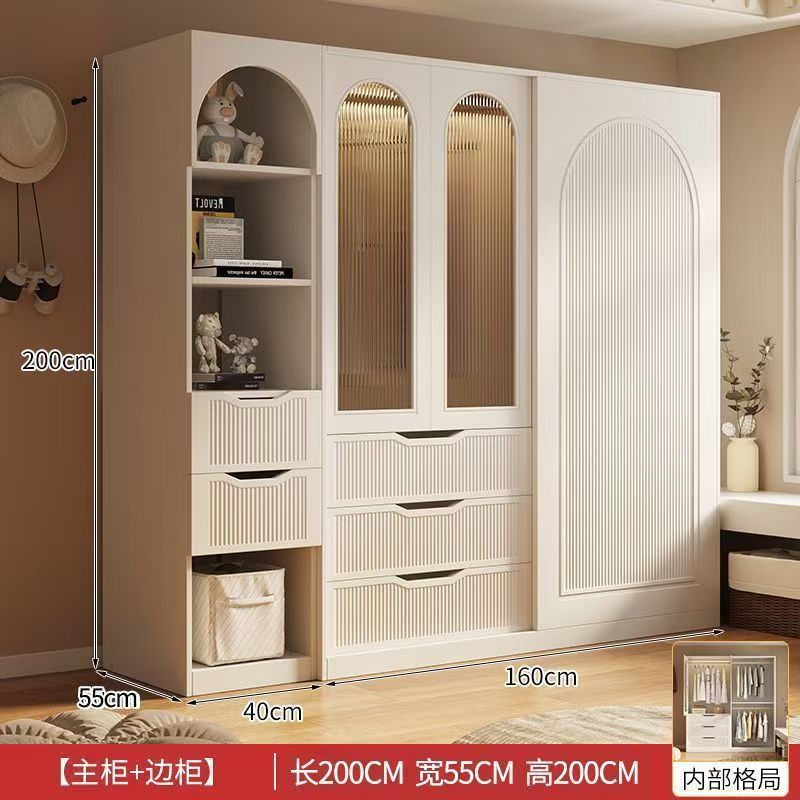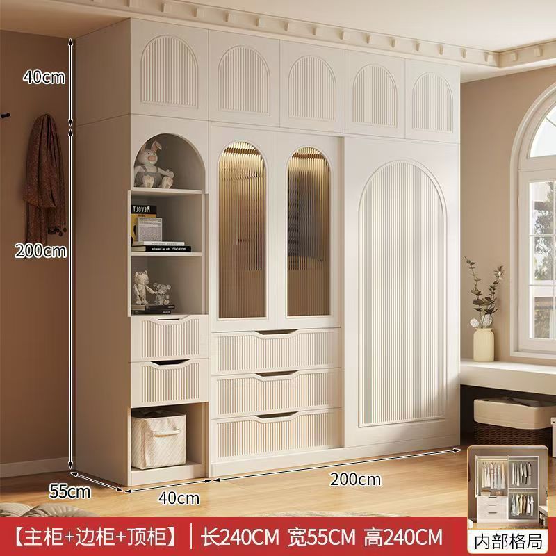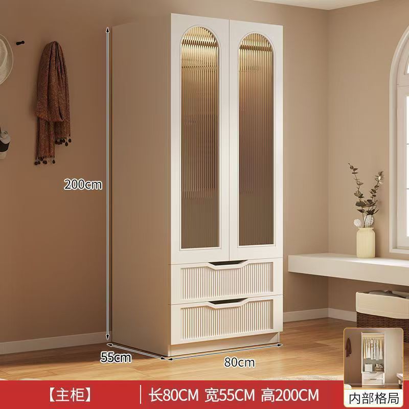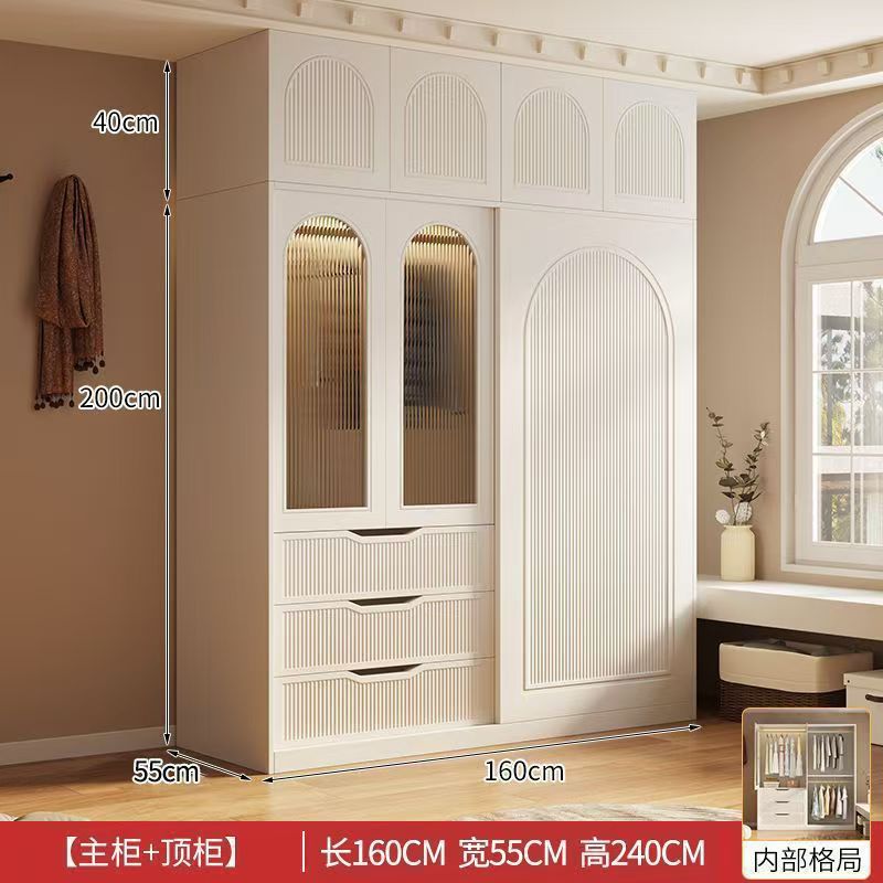 프렌치 크림 스타일 옷장 작은 아파트 슬라이딩 도어 홈 침실 보관 캐비닛 현대적인 단순 고급 완제품 옷장스토어 가기