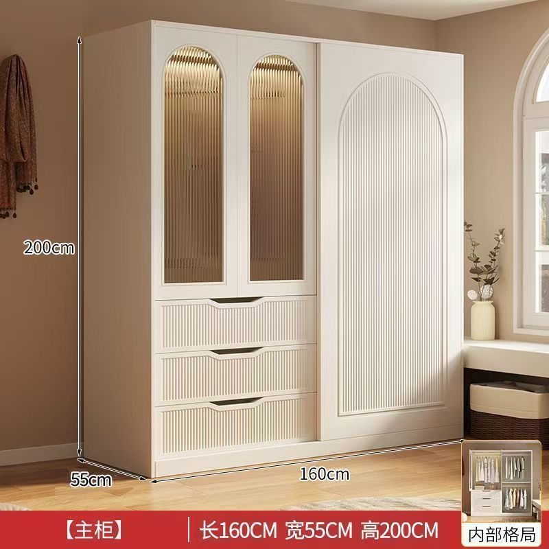 프렌치 크림 스타일 옷장 작은 아파트 슬라이딩 도어 홈 침실 보관 캐비닛 현대적인 단순 고급 완제품 옷장