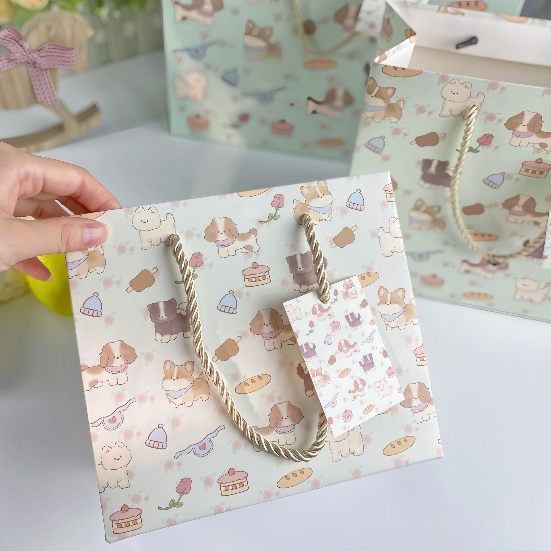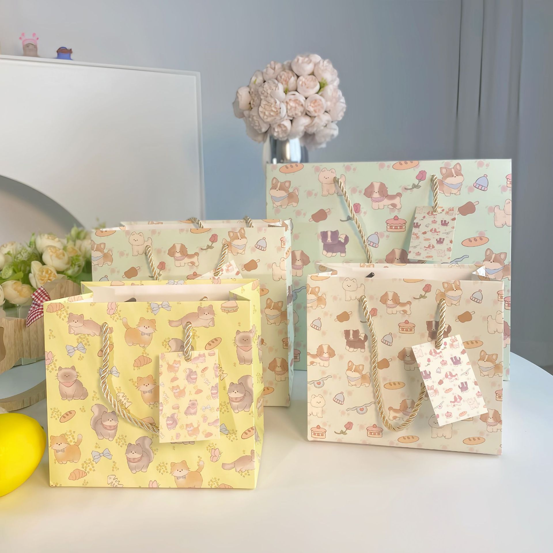 새로운 손으로 그린 고양이와 개의 파라다이스, 친구를 위한 종이 가방 선물 가방, 고급스러운 선물, 고급 토트 백