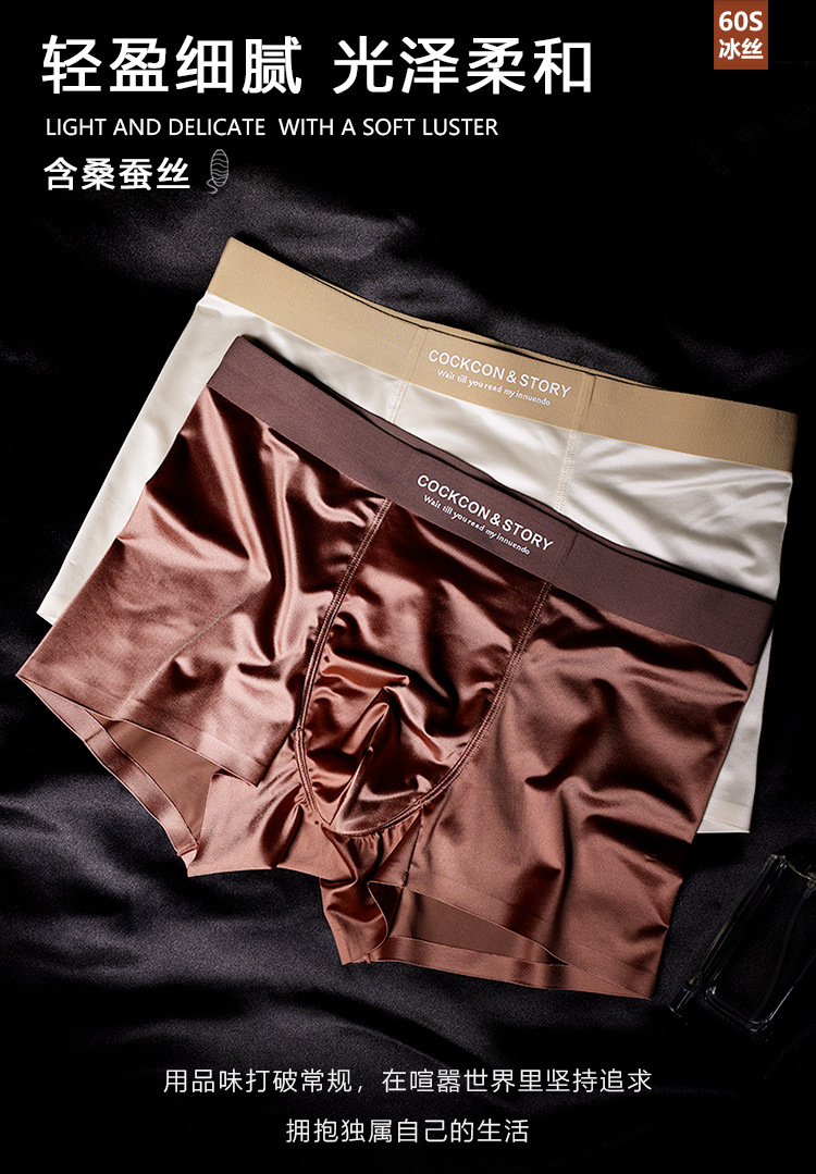 남자 속옷 가벼운 럭셔리 새틴 아이스 실크 비 마킹 통기성 짧은 바지 소년 여름 패션 복서 바지 바지 복서 바지