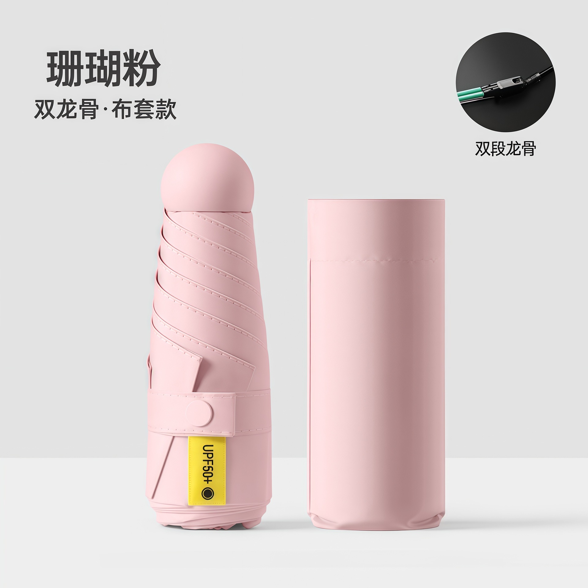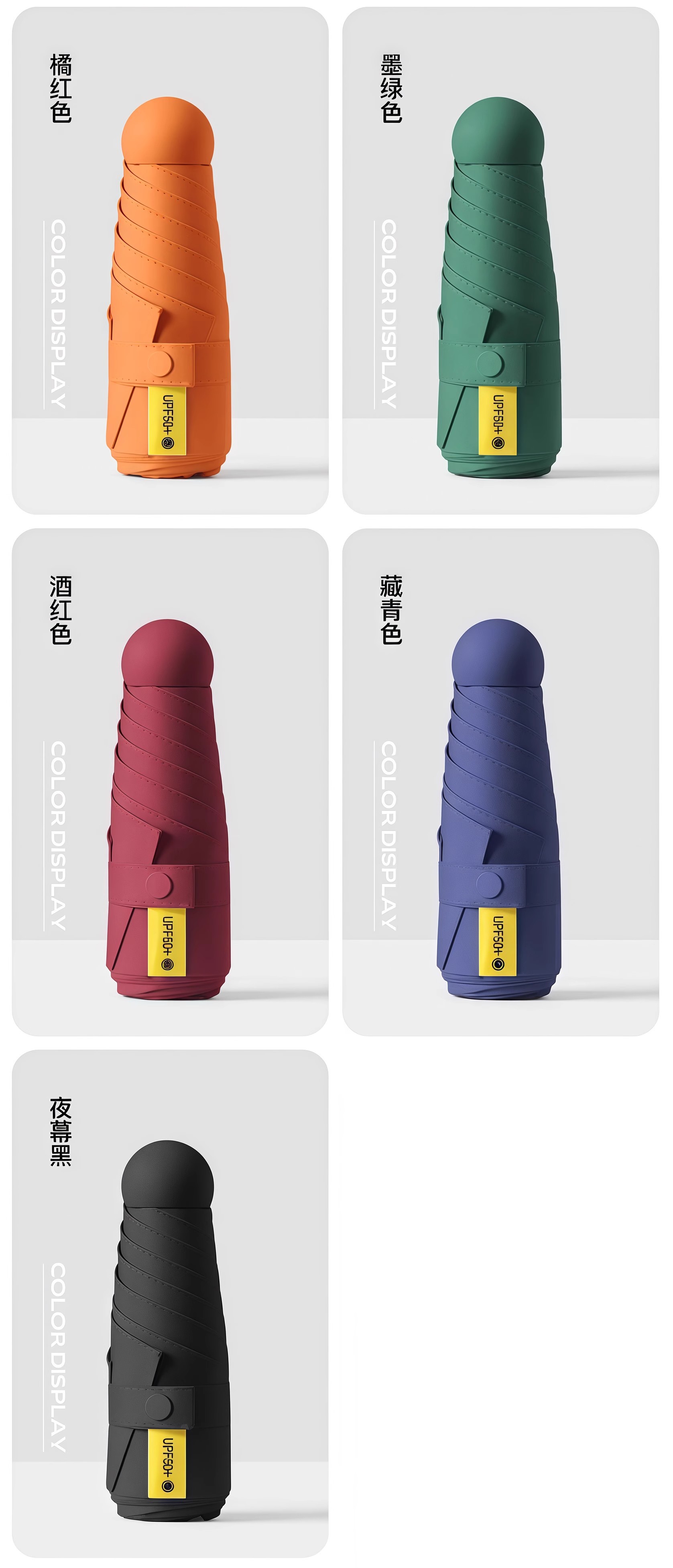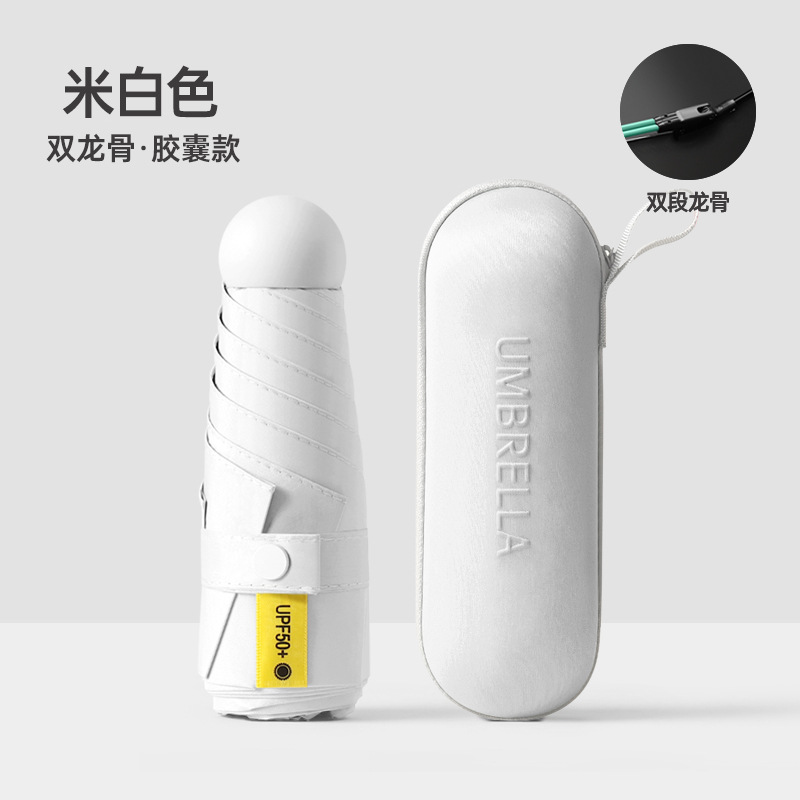 수동 비닐 자외선 차단 UV 차양 50% off 포켓 캡슐 우산 남성과 여성을위한 6 뼈 이중 목적 우산