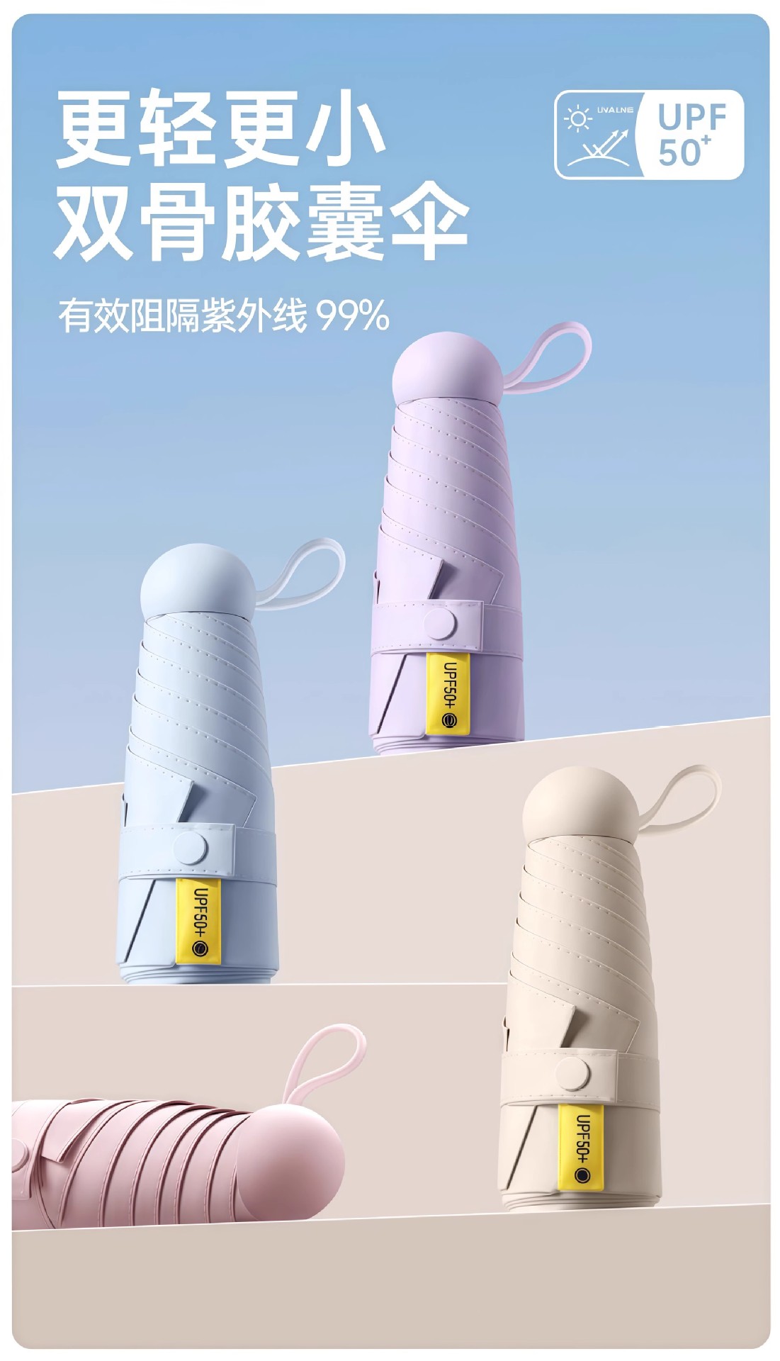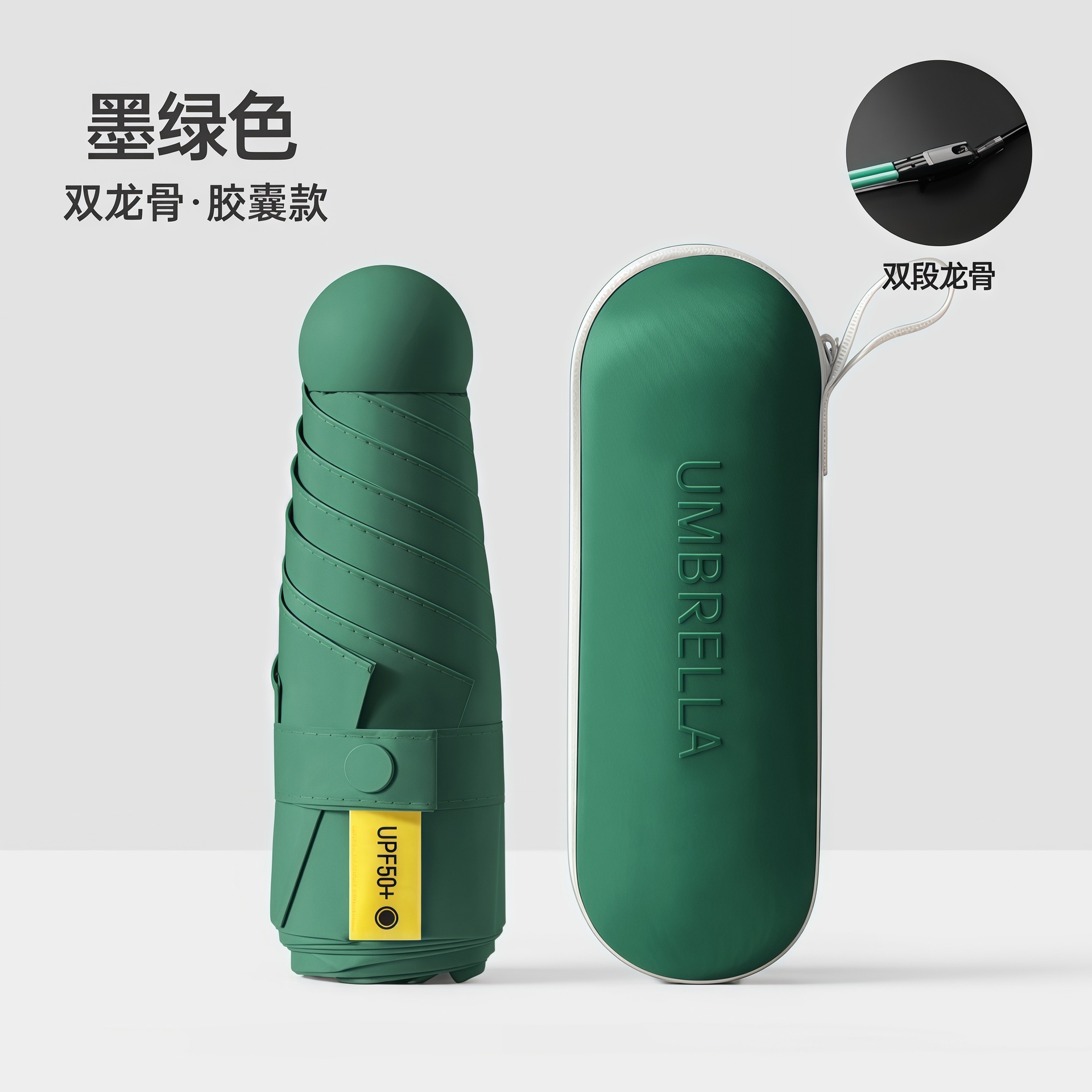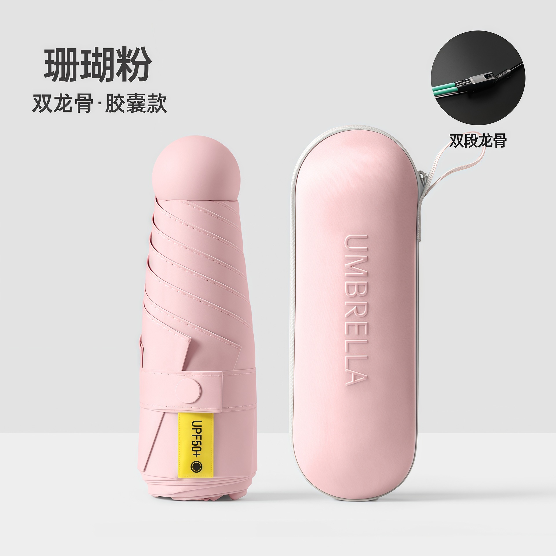 수동 비닐 자외선 차단 UV 차양 50% off 포켓 캡슐 우산 남성과 여성을위한 6 뼈 이중 목적 우산