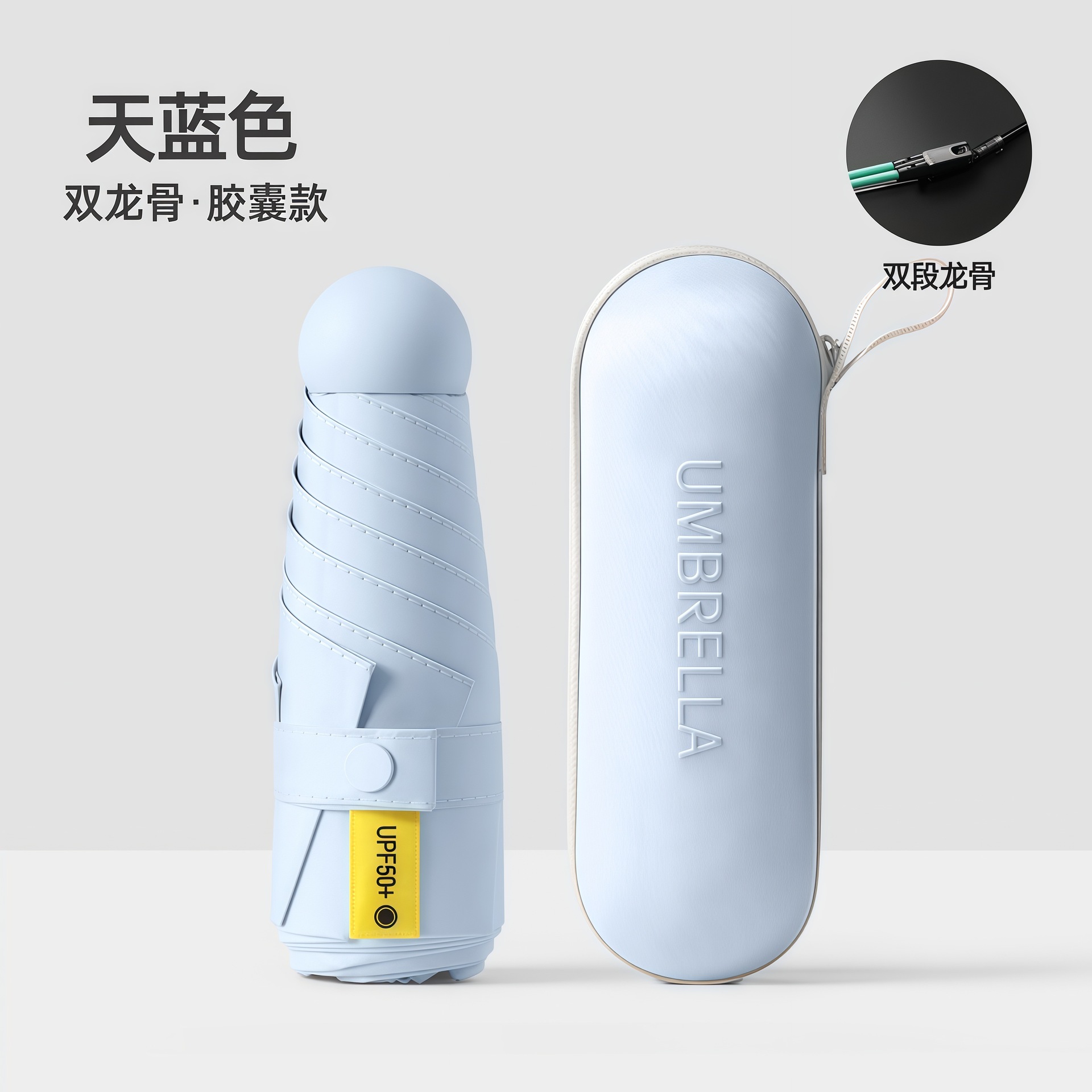 수동 비닐 자외선 차단 UV 차양 50% off 포켓 캡슐 우산 남성과 여성을위한 6 뼈 이중 목적 우산스토어 가기