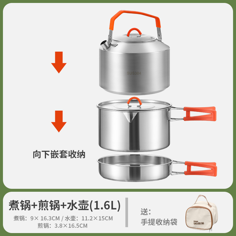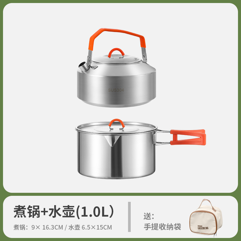 304 스테인레스 스틸 야외 냄비 캠핑 조리기구 카세트 스토브 특수 냄비 주전자 피크닉 장비 세트