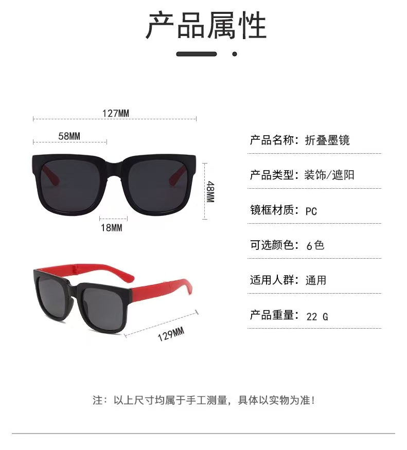 • 검은색 프레임 빨간색 다리; 어린이용 접이식 안경