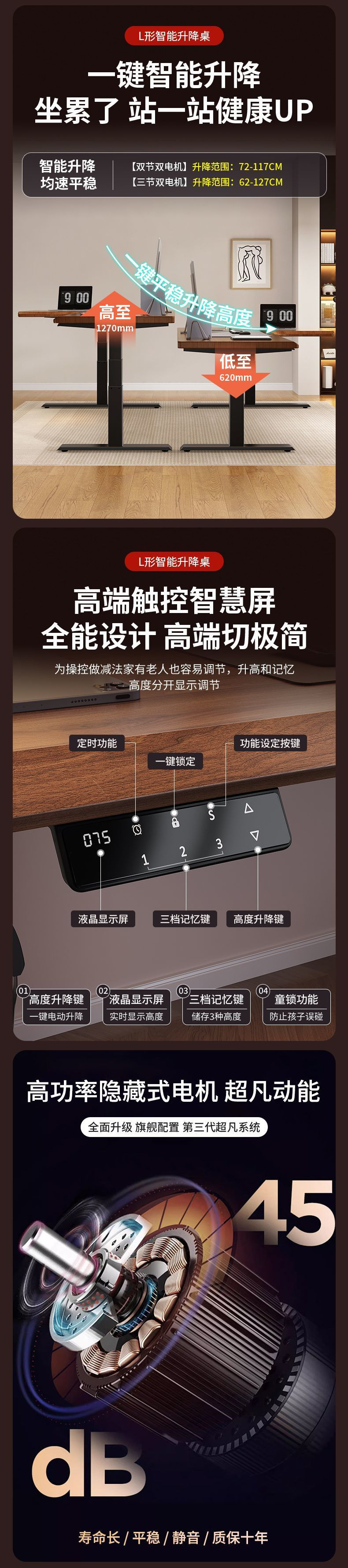 • [L3 섹션 공식 듀얼 모터(플러그 스트립 포함)] 블랙 월넛-오른쪽 코너