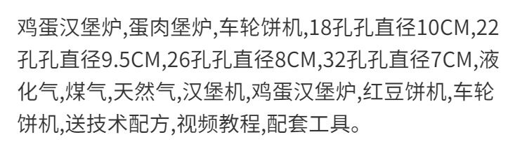 18홀, 22홀, 26홀, 32홀 에그버거머신, 팥케이크머신, 상업용 가스 에그버거머신, 에그버거머신