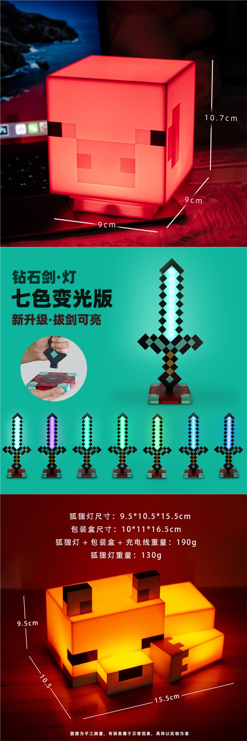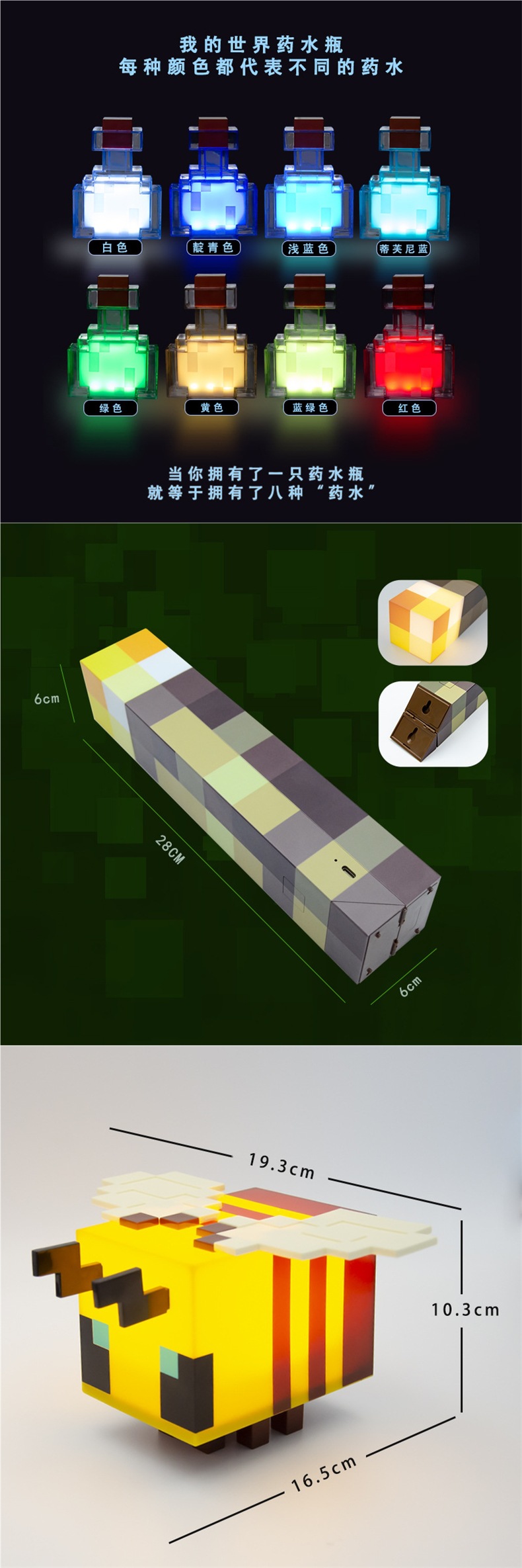 Minecraft 주변 장치 다이아몬드 광석 램프 색상 변경 물약 병 Minecraft 토치 토치 모델 선물 야간 조명
