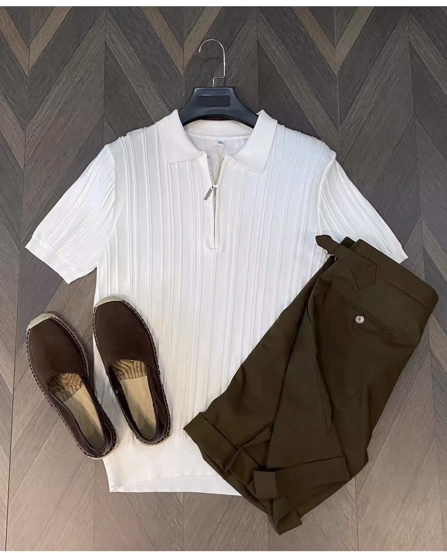 하프 지퍼 셔츠 남자 반소매 여름 2025 새로운 옷깃 니트 톱 남자 셔츠스토어 가기