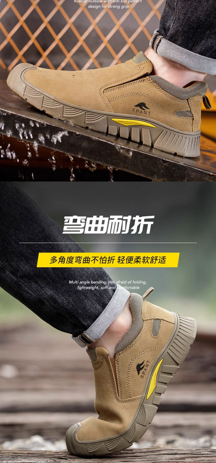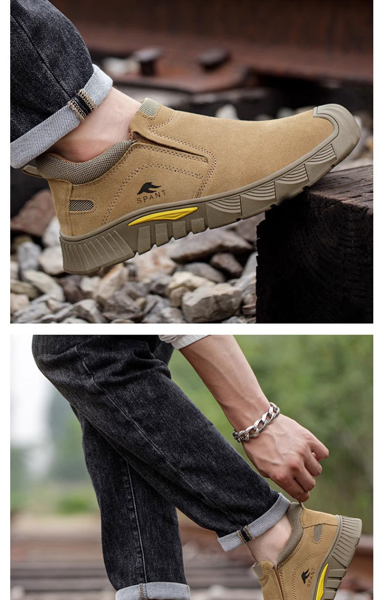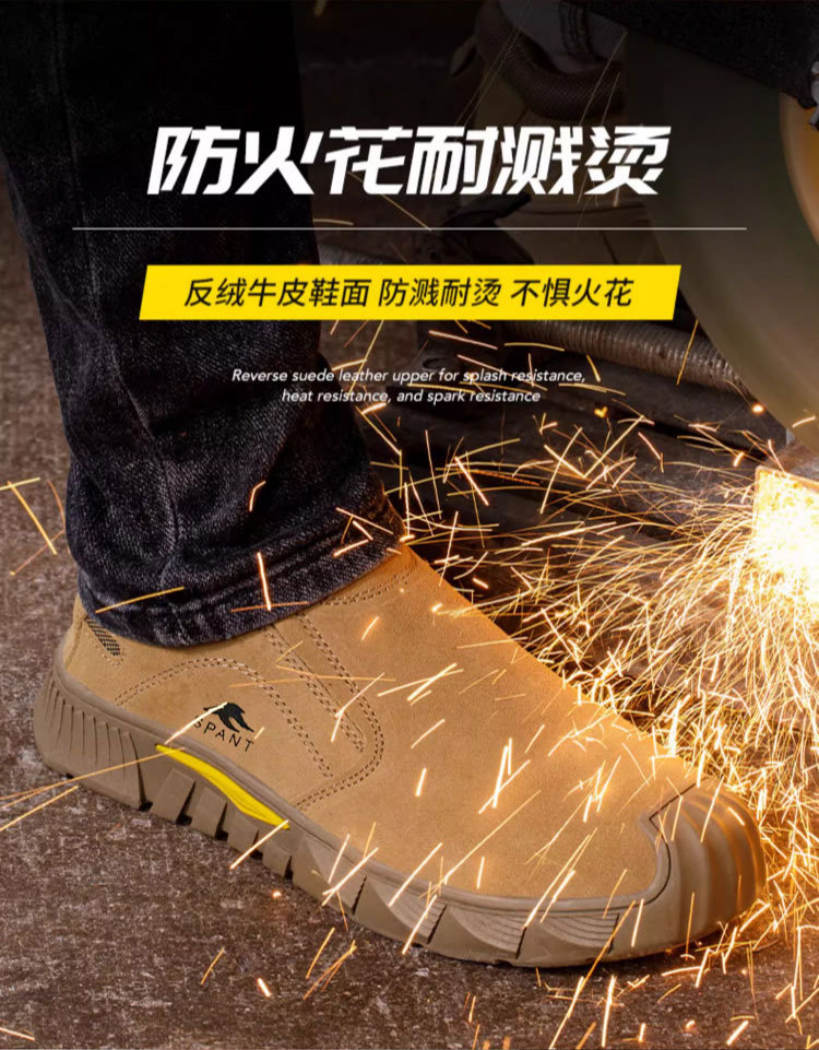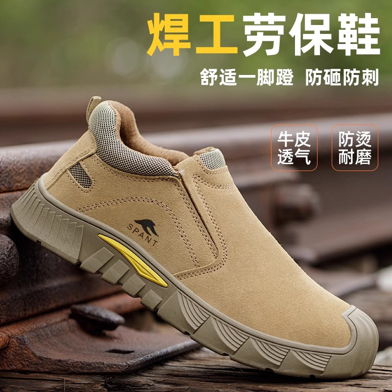 용접공용 소가죽 안전화, 통기성, 충격 방지, 천공 방지, 건설 현장 내마모성 작업화, 방수, 미끄럼 방지, 불꽃 방지