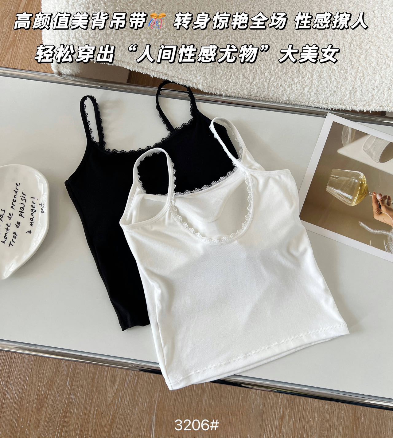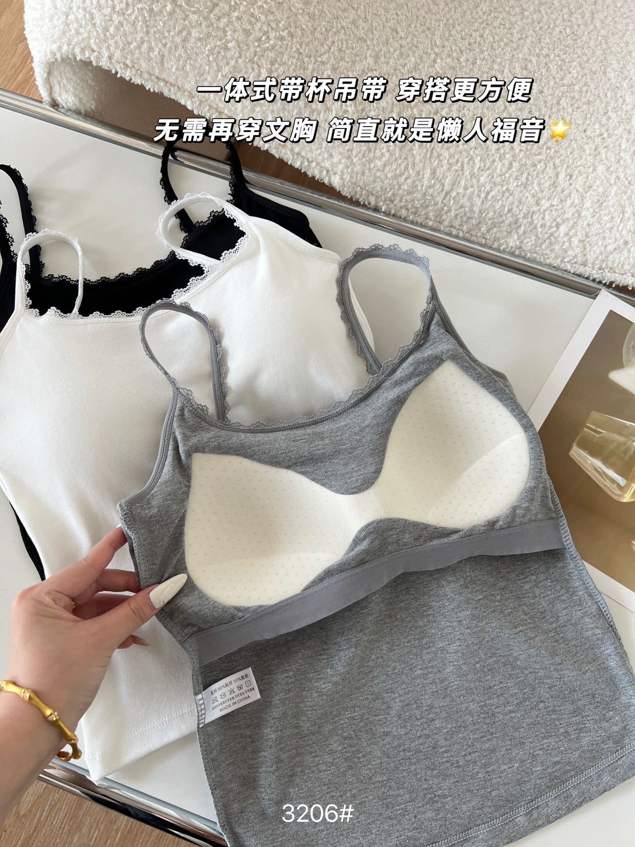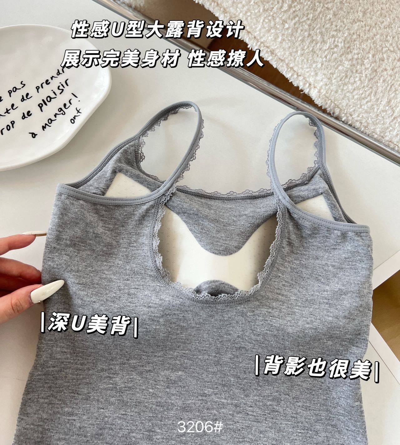 品名:一体式小蕾丝边拼接U背吊带