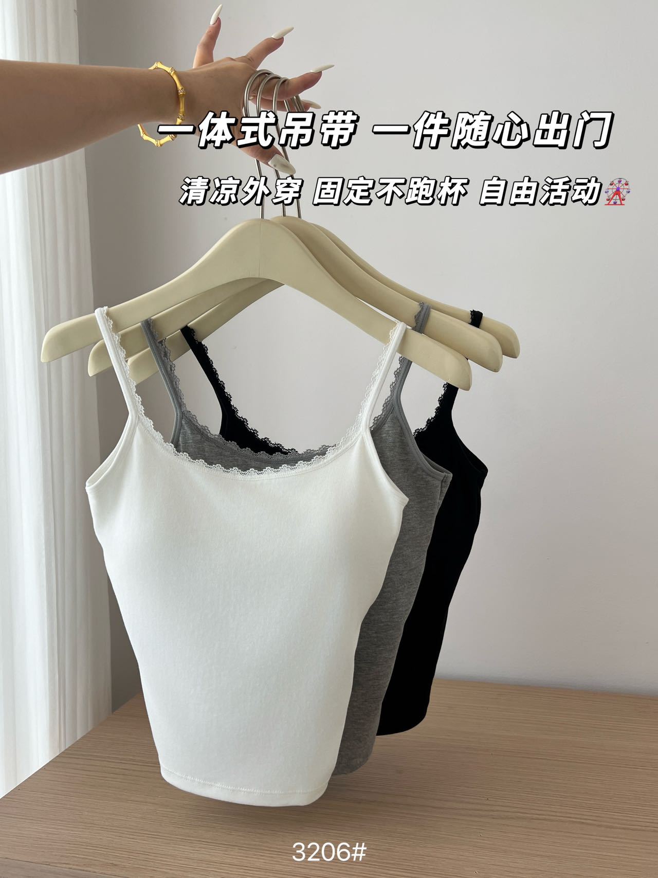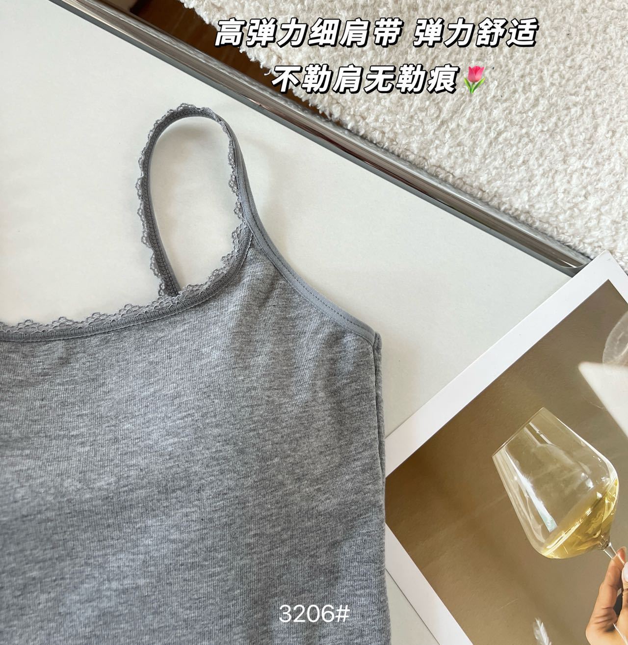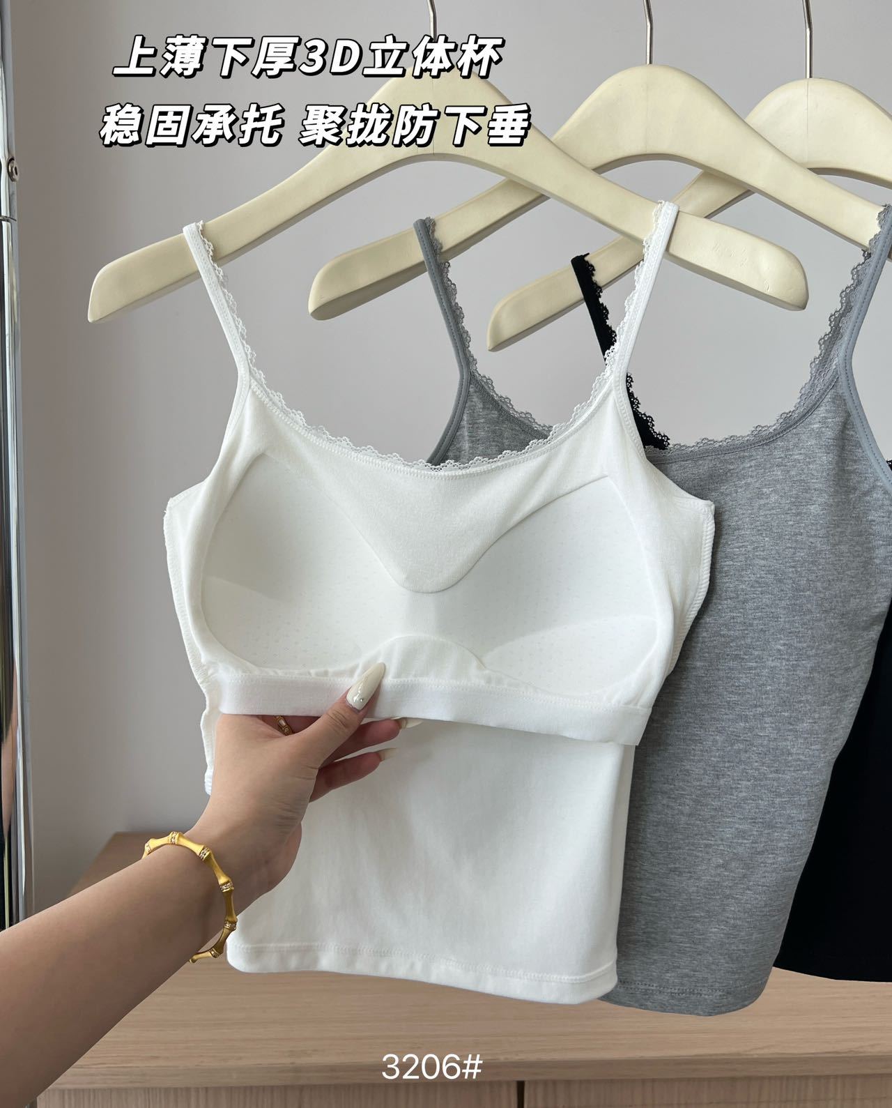 品名:一体式小蕾丝边拼接U背吊带