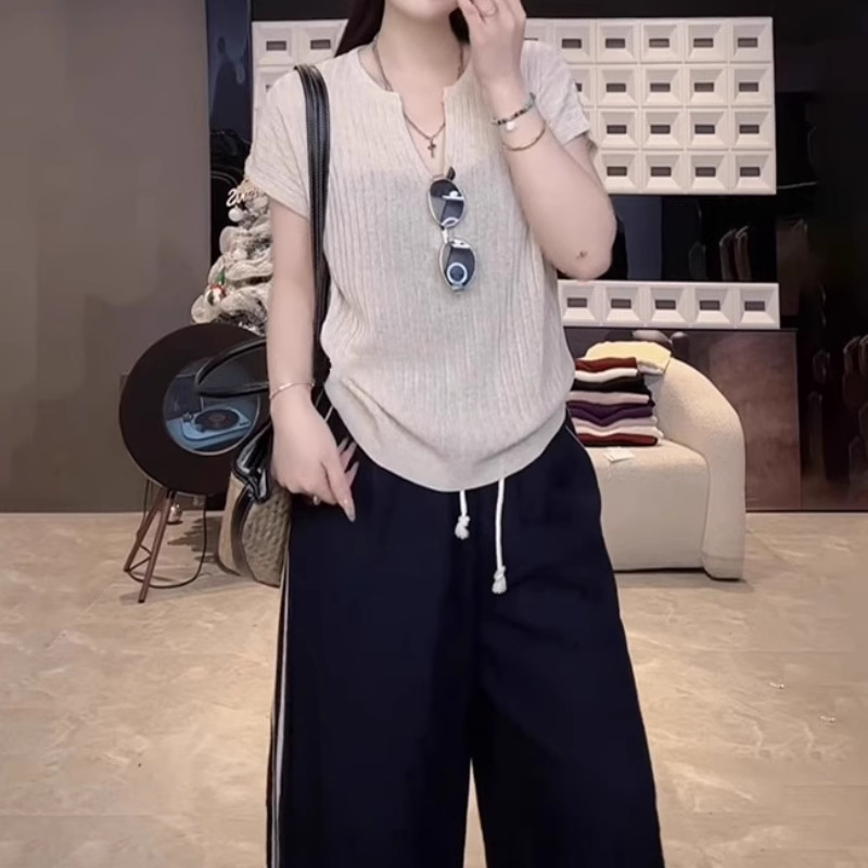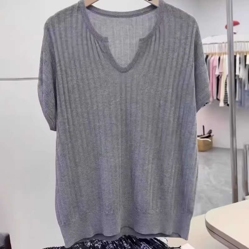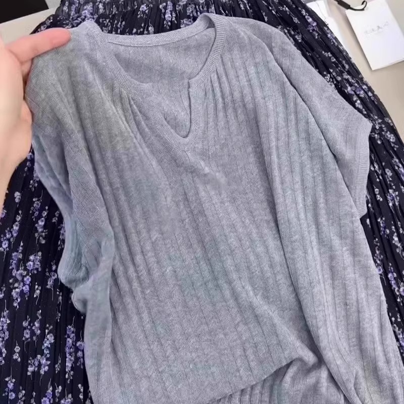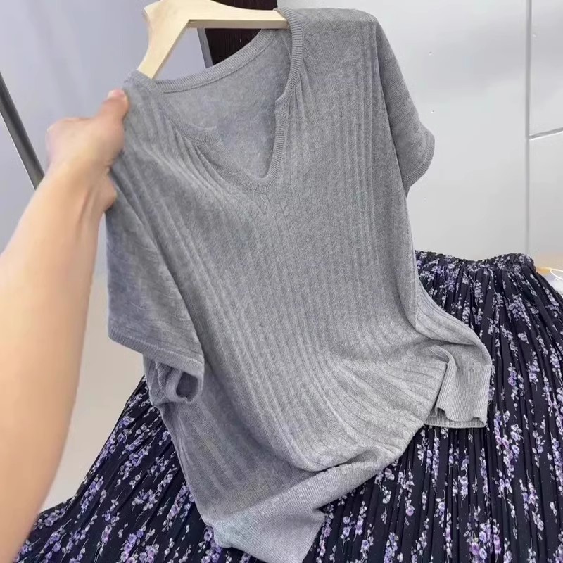 여성 할로우 화이트 크루 넥 니트 조끼 봄과 여름 패션 쌓인 외부 짧은 소매 블라우스 U 자형 원피스스토어 가기