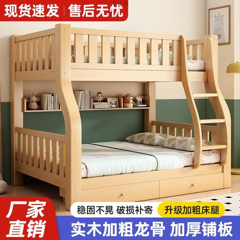 단단한 나무 침대 이층 침대 2 층 높고 낮은 침대 더블 침대 작은 아파트 어린이 침대 이층 나무 침대 어머니 침대