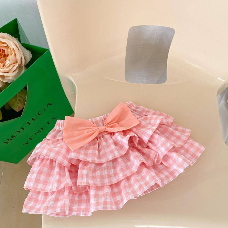 여아용 유아 여름 스커트, 푹신한 힙 스커트, 패셔너블한 체크 무늬 스커트, 어린이용 큰 리본 주름 스커트