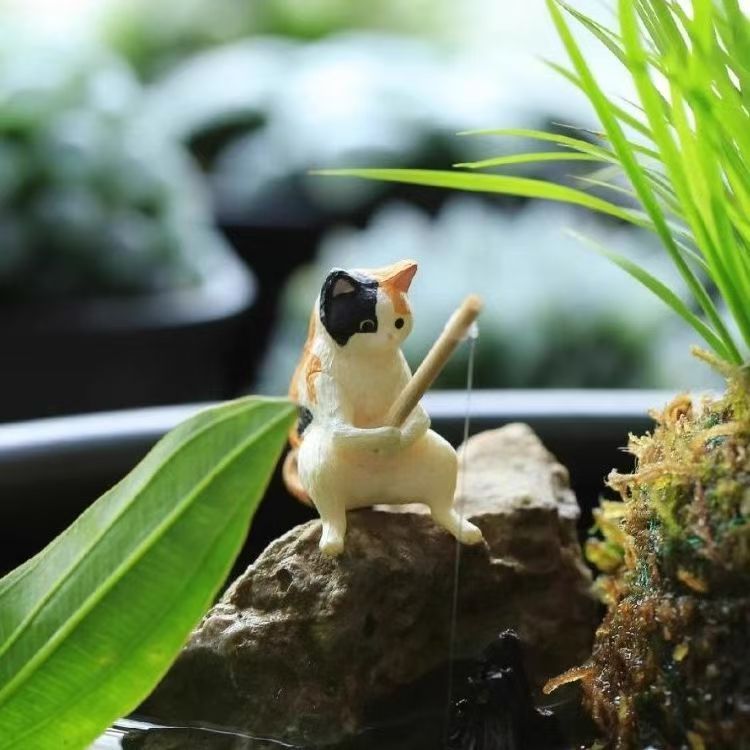 수조 조경 교수형 낚시 고양이 크리 에이 티브 장식품 거실 데스크탑 미니 마이크로 풍경 새끼 고양이 낚시 장식 용품스토어 가기