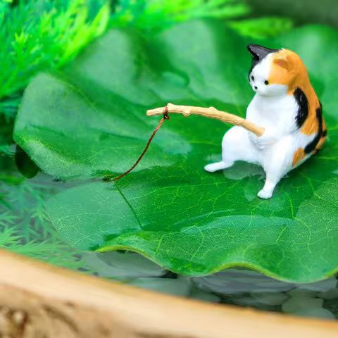 수조 조경 교수형 낚시 고양이 크리 에이 티브 장식품 거실 데스크탑 미니 마이크로 풍경 새끼 고양이 낚시 장식 용품