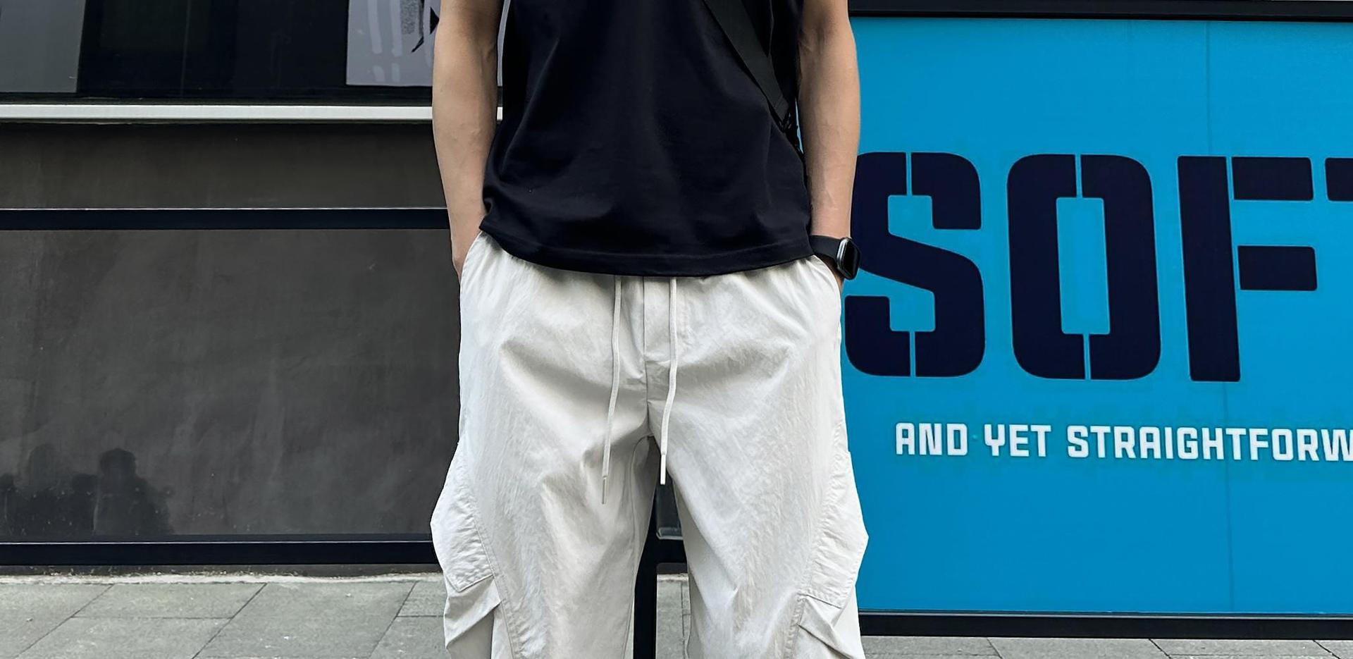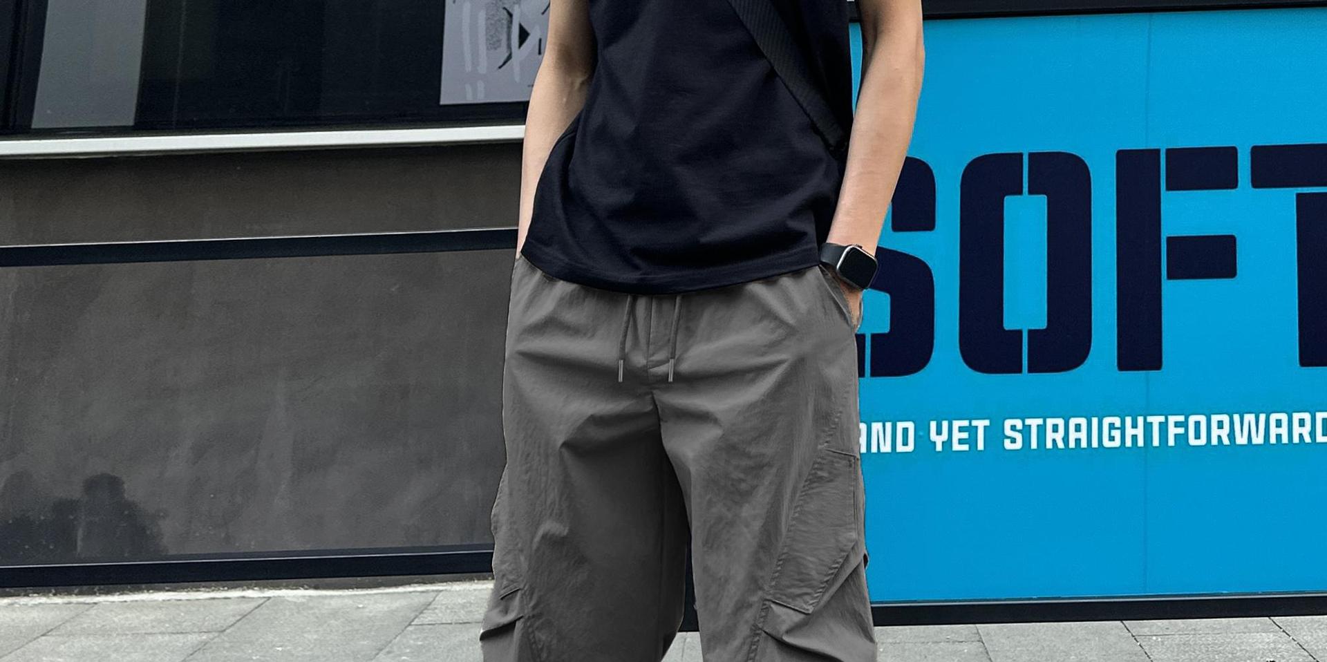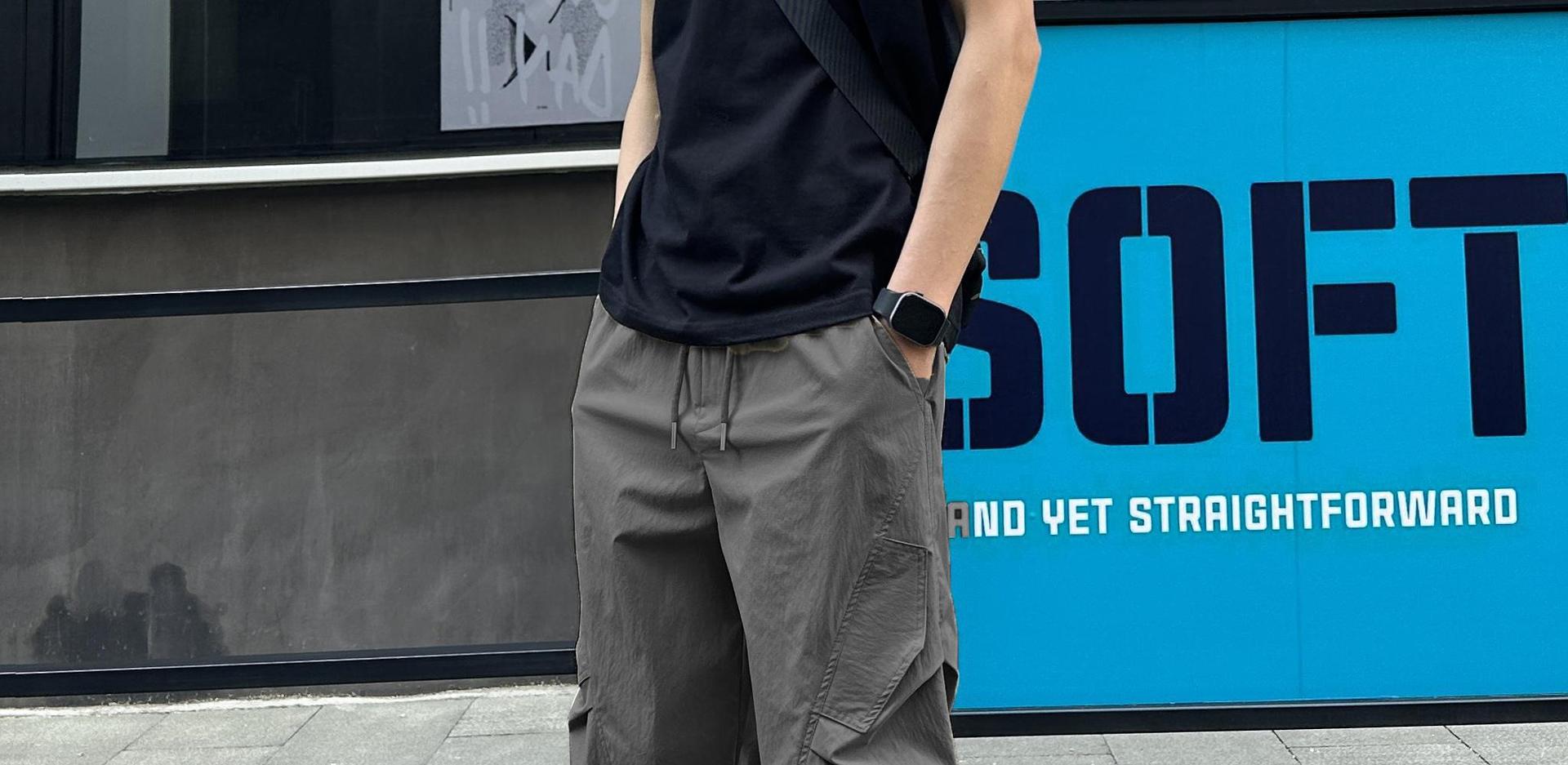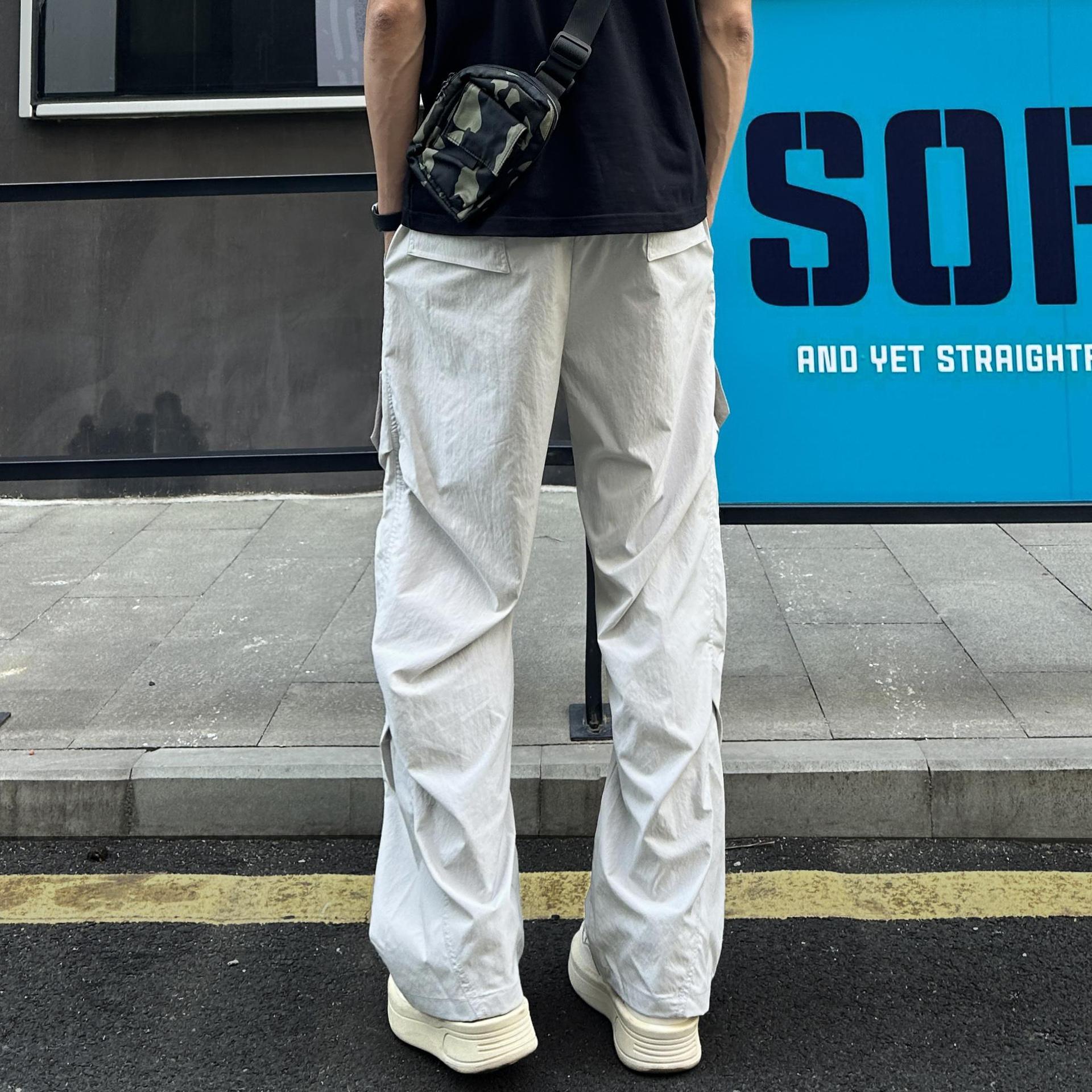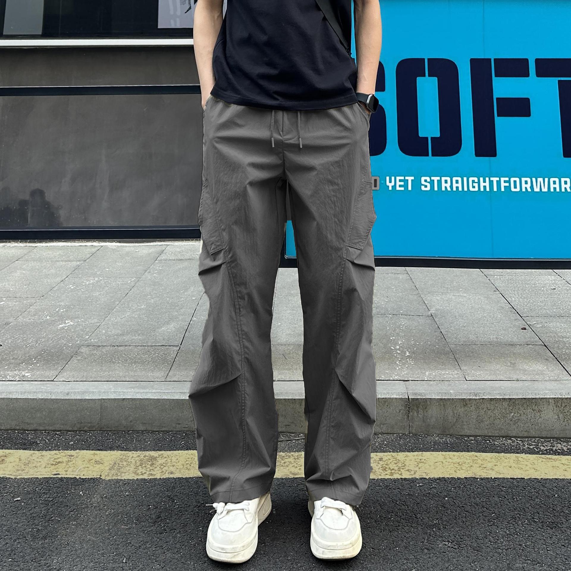 새로운 도착 2025 주름 유행 스트레이트 캐주얼 바지 남자의 여름 얇은 느슨한 야외 툴링 남성용 빠른 건조 바지스토어 가기
