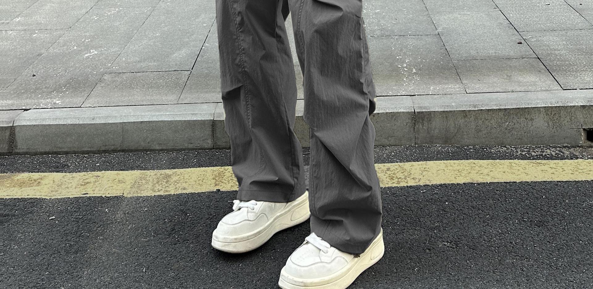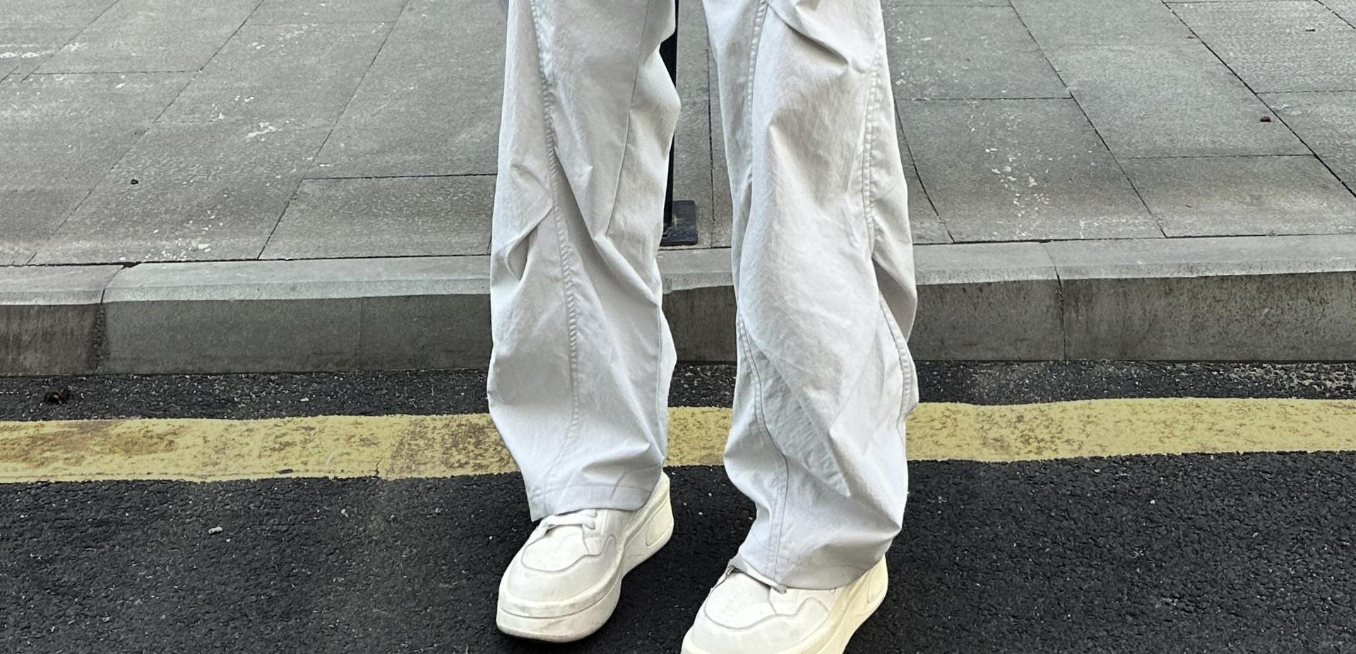 새로운 도착 2025 주름 유행 스트레이트 캐주얼 바지 남자의 여름 얇은 느슨한 야외 툴링 남성용 빠른 건조 바지