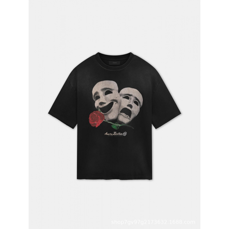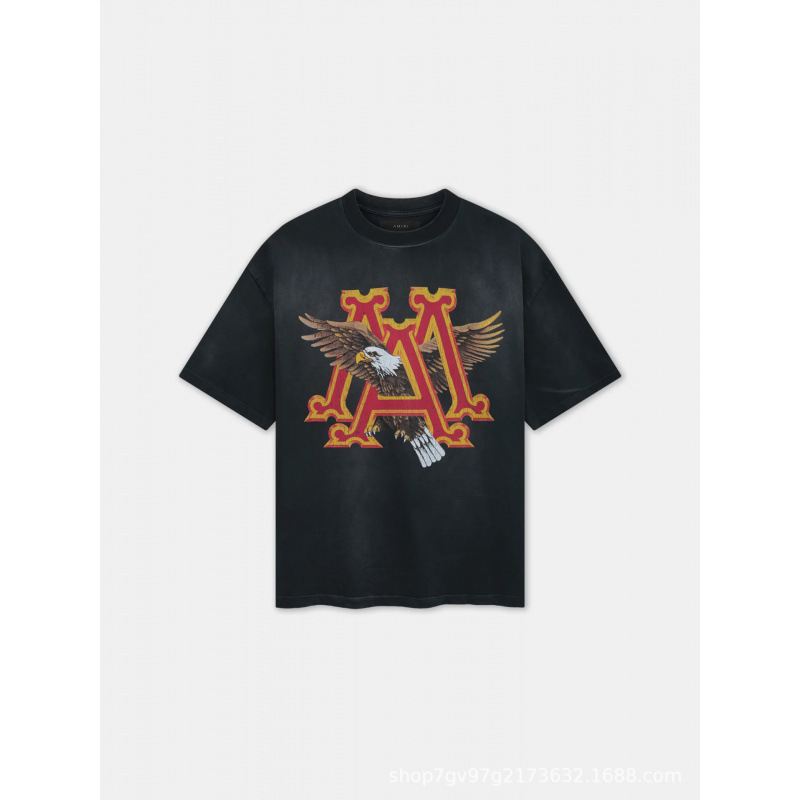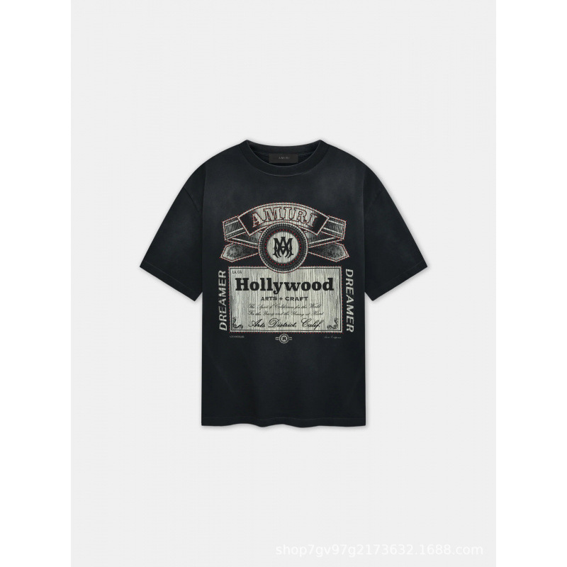 트렌디 브랜드 라운드넥 캐주얼 스타일 반팔 순면 남성 티셔츠 부드러운 프린트 워싱 빈티지 헤비웨이트 이너웨어 남성용스토어 가기