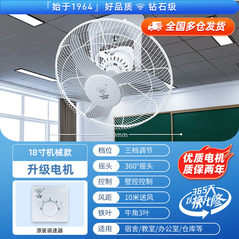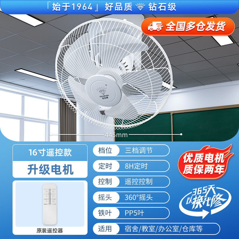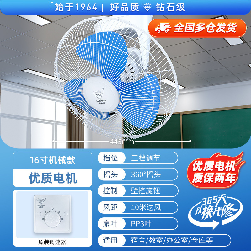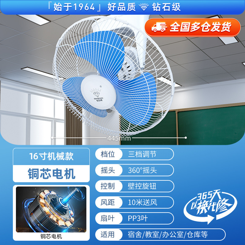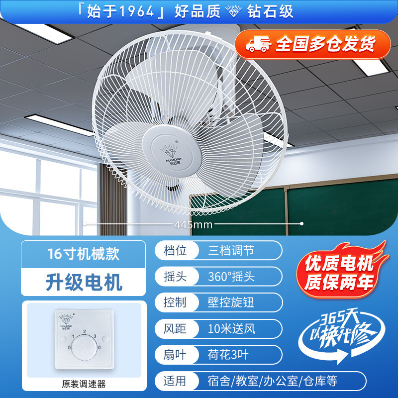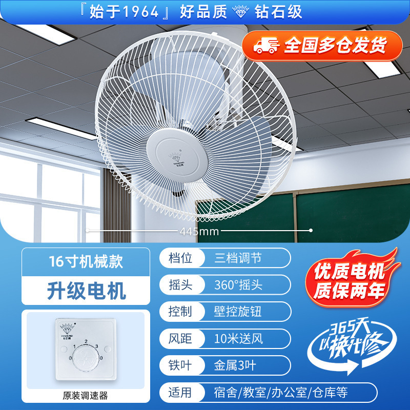 다이아몬드 브랜드 16 인치 지붕 전기 팬 학교 천장 지붕 팬 기숙사 벽걸이 형 360 도 흔들림 헤드 천장 팬스토어 가기