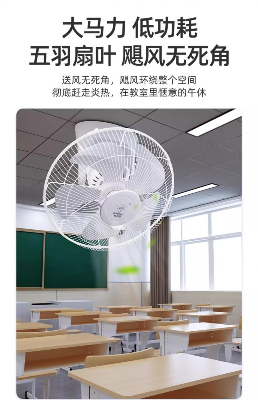 다이아몬드 브랜드 16 인치 지붕 전기 팬 학교 천장 지붕 팬 기숙사 벽걸이 형 360 도 흔들림 헤드 천장 팬