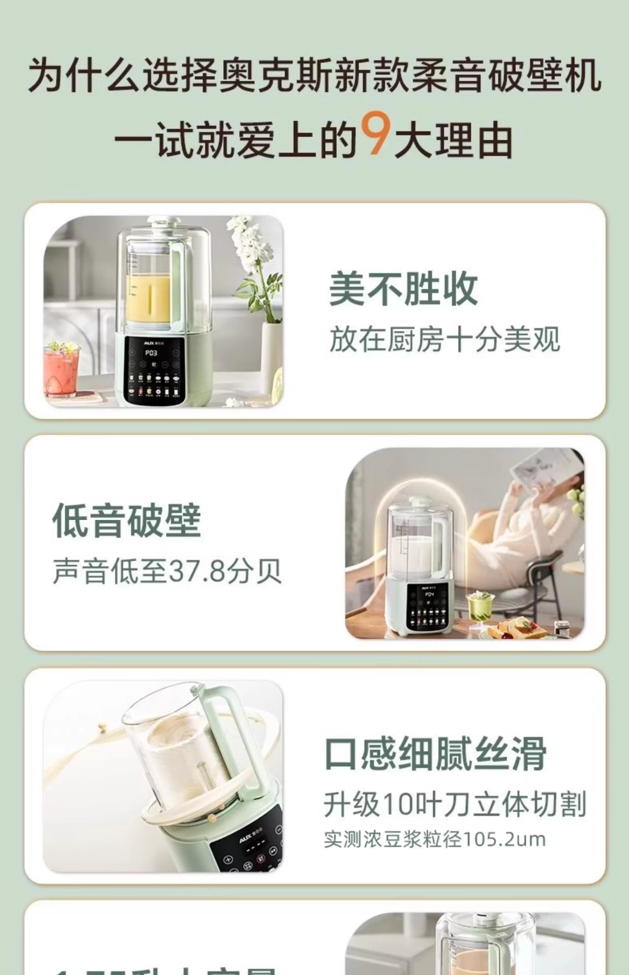 오크스 소형 완전 자동 가정용 주스기, 일체형 조리기, 3~4인용 미니 두유기스토어 가기