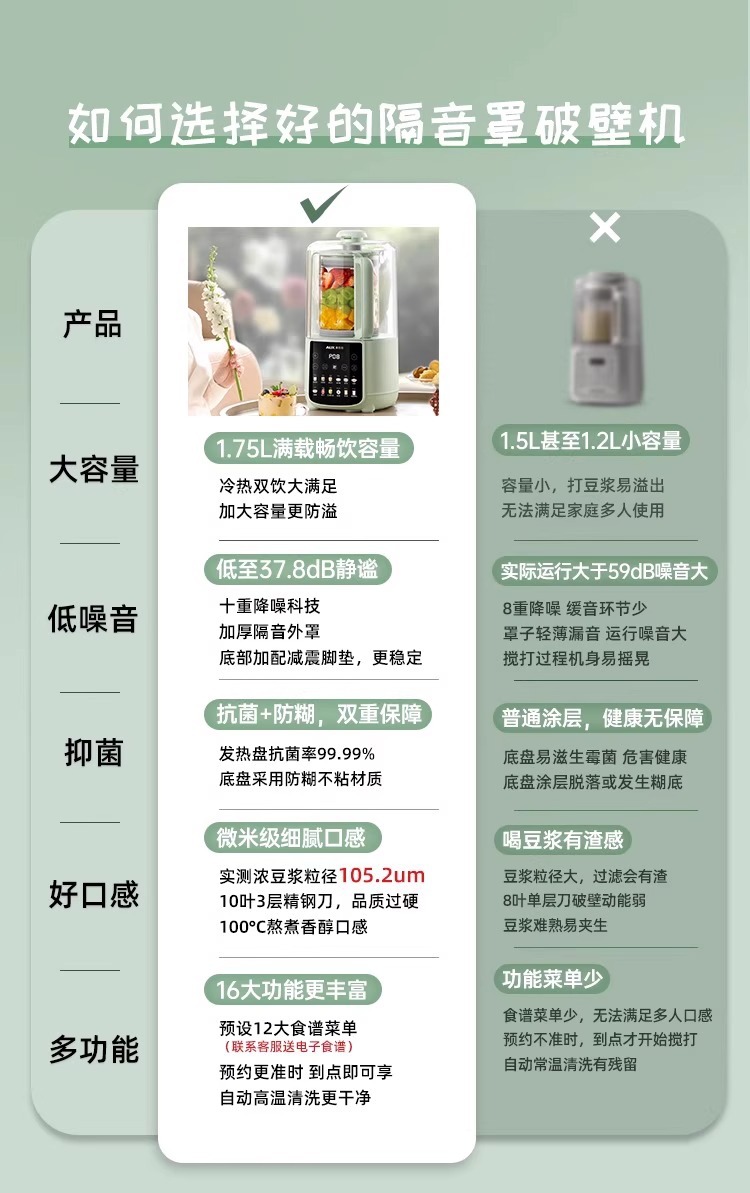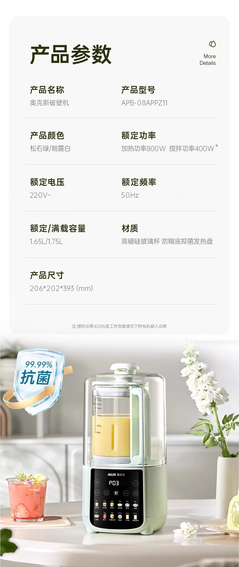• 0.8리터 용량 1~3인용 [업그레이드된 항균 섀시] 두유기계