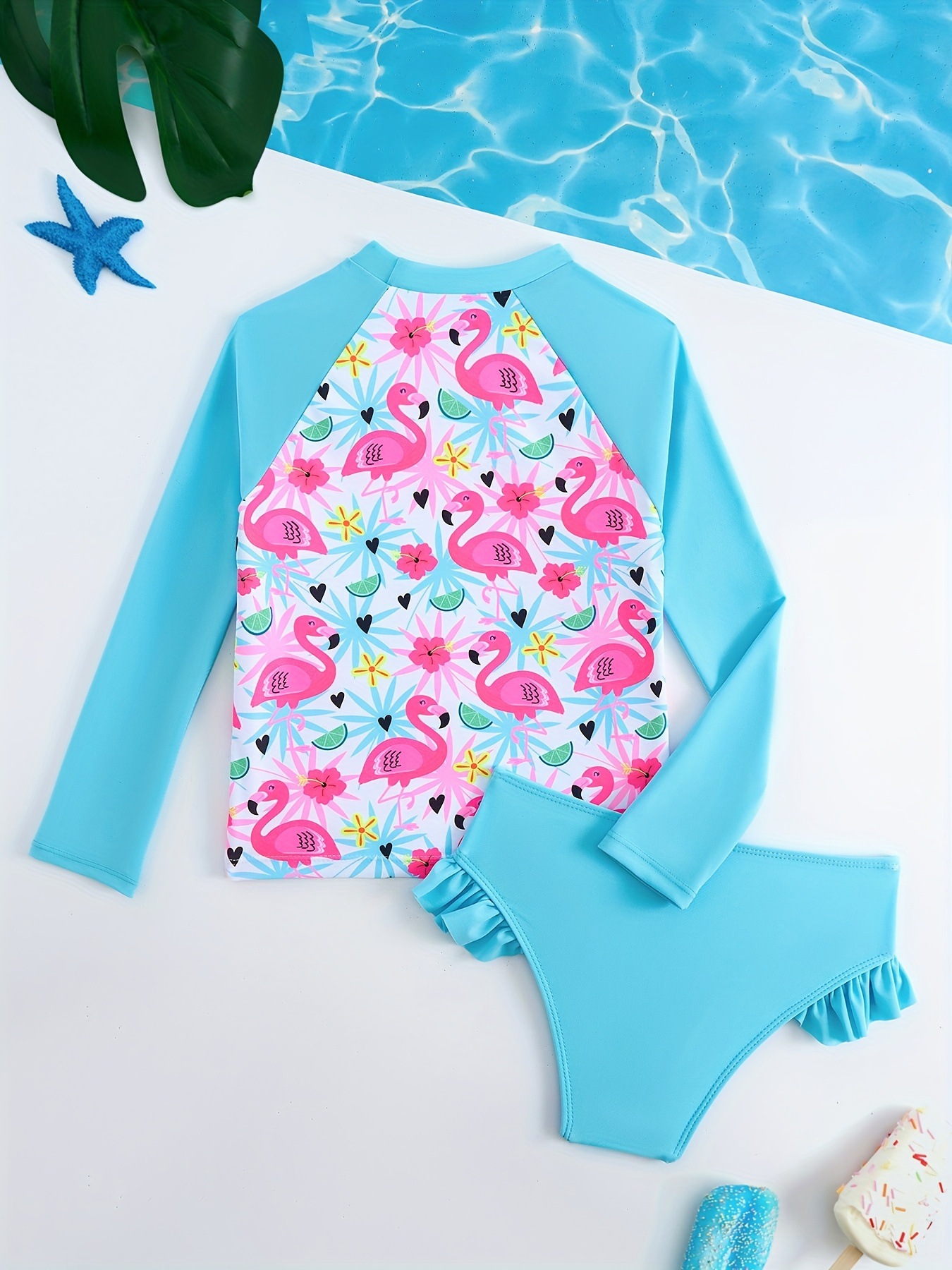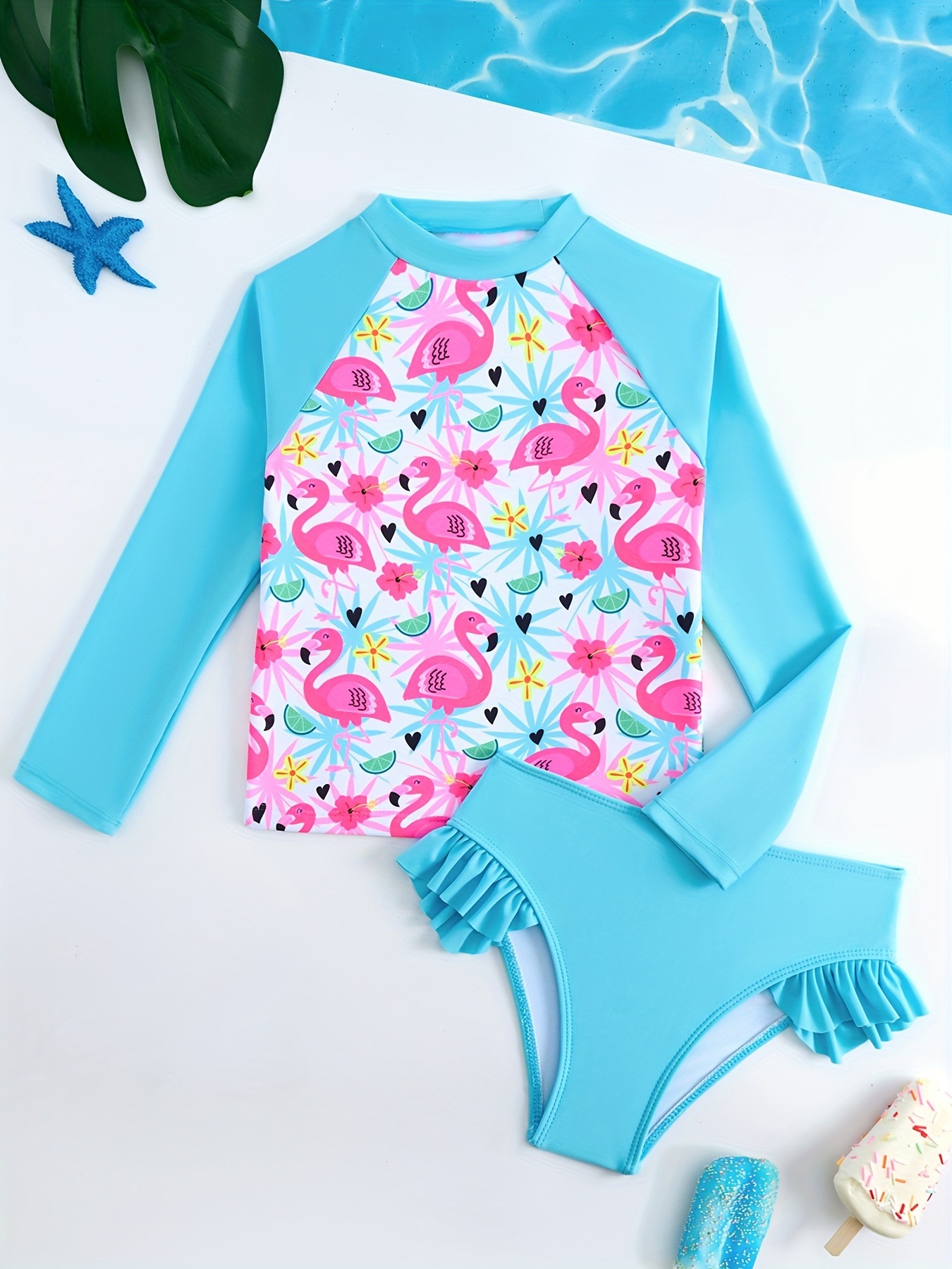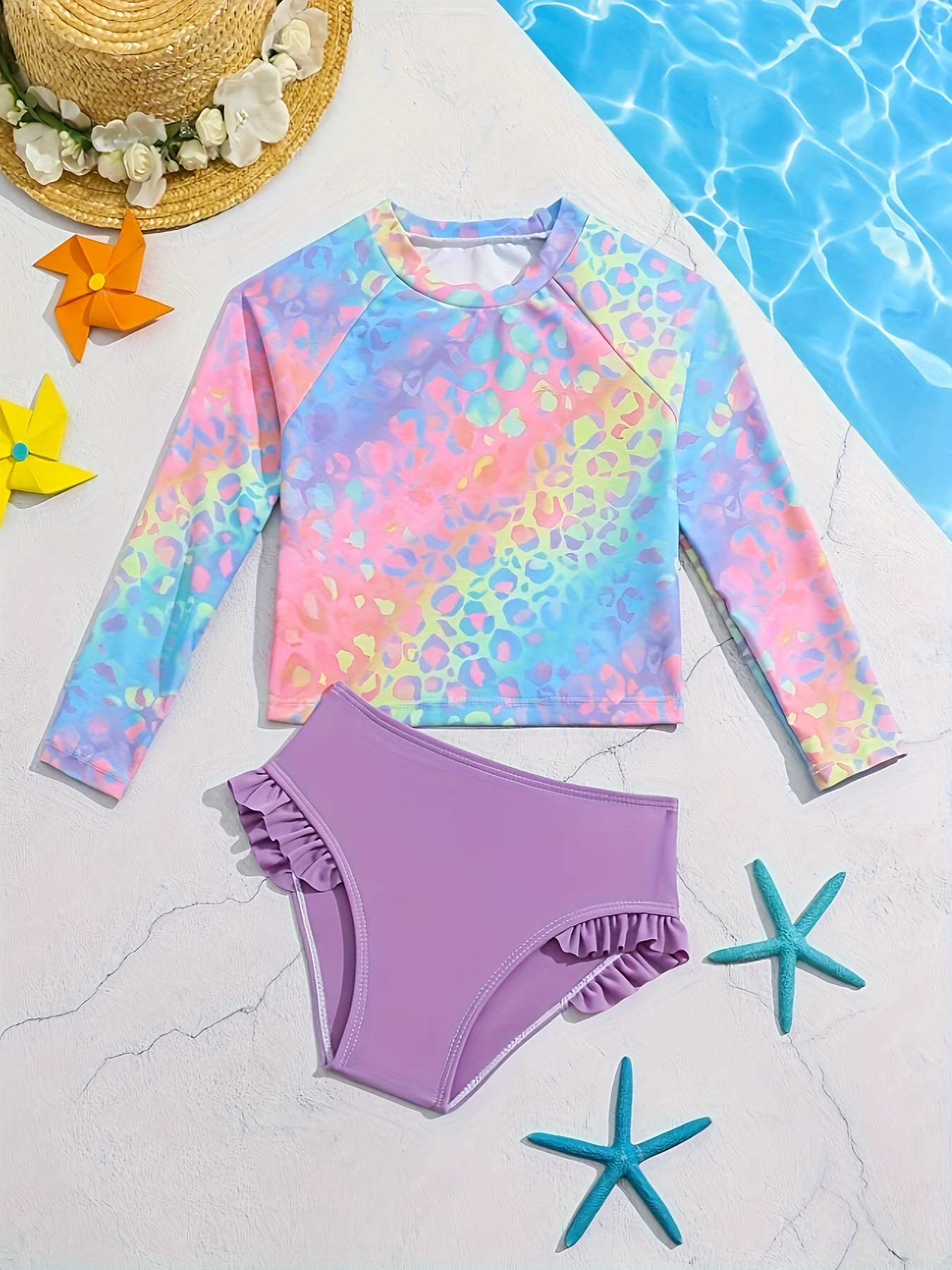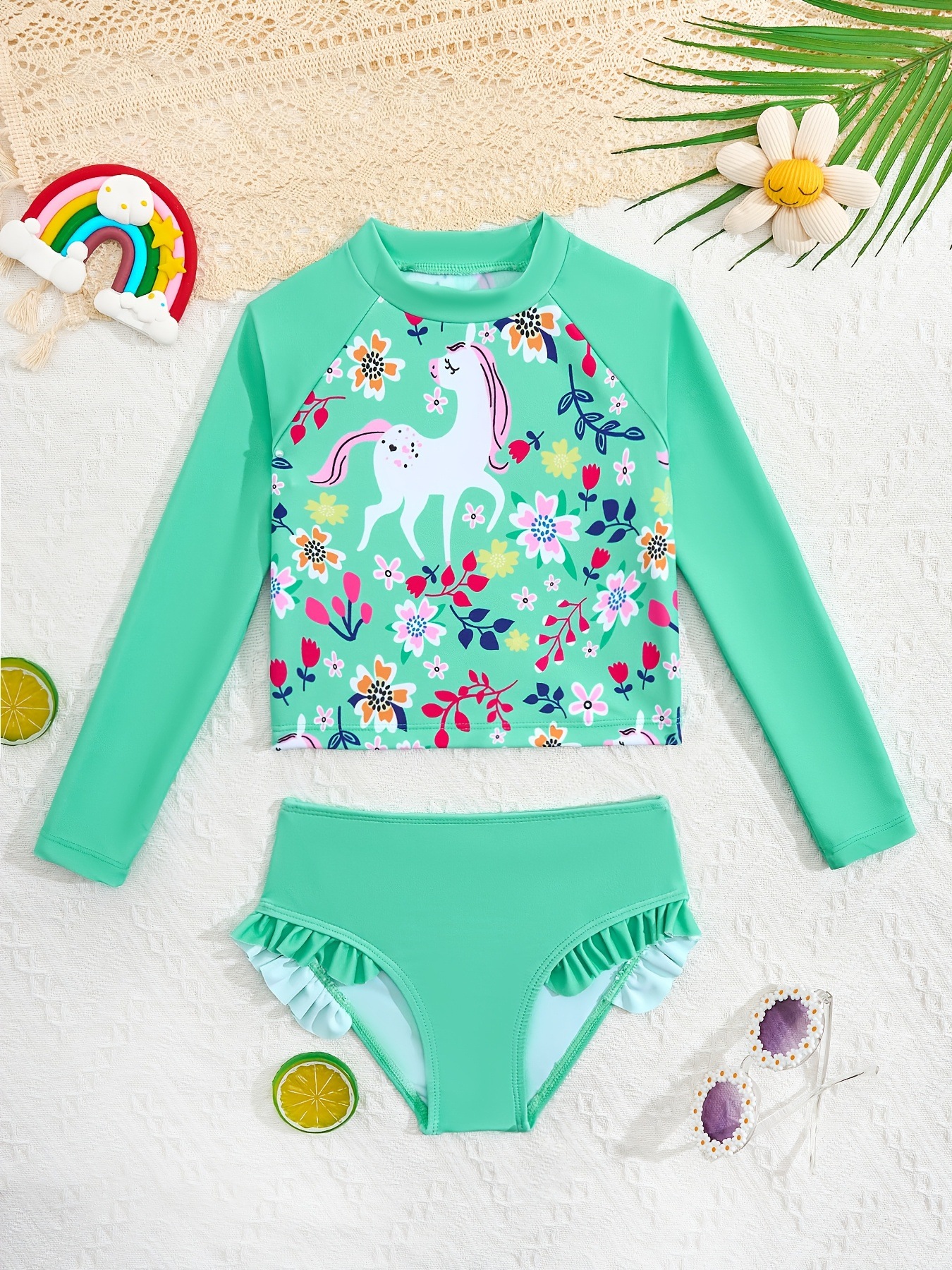 어린이용 분리형 수영모, 수영복, 긴팔, 신상 여아 비키니, 유아 및 어린이용 프린트 자외선 차단 수영복, 유럽 및 미국 스타일
