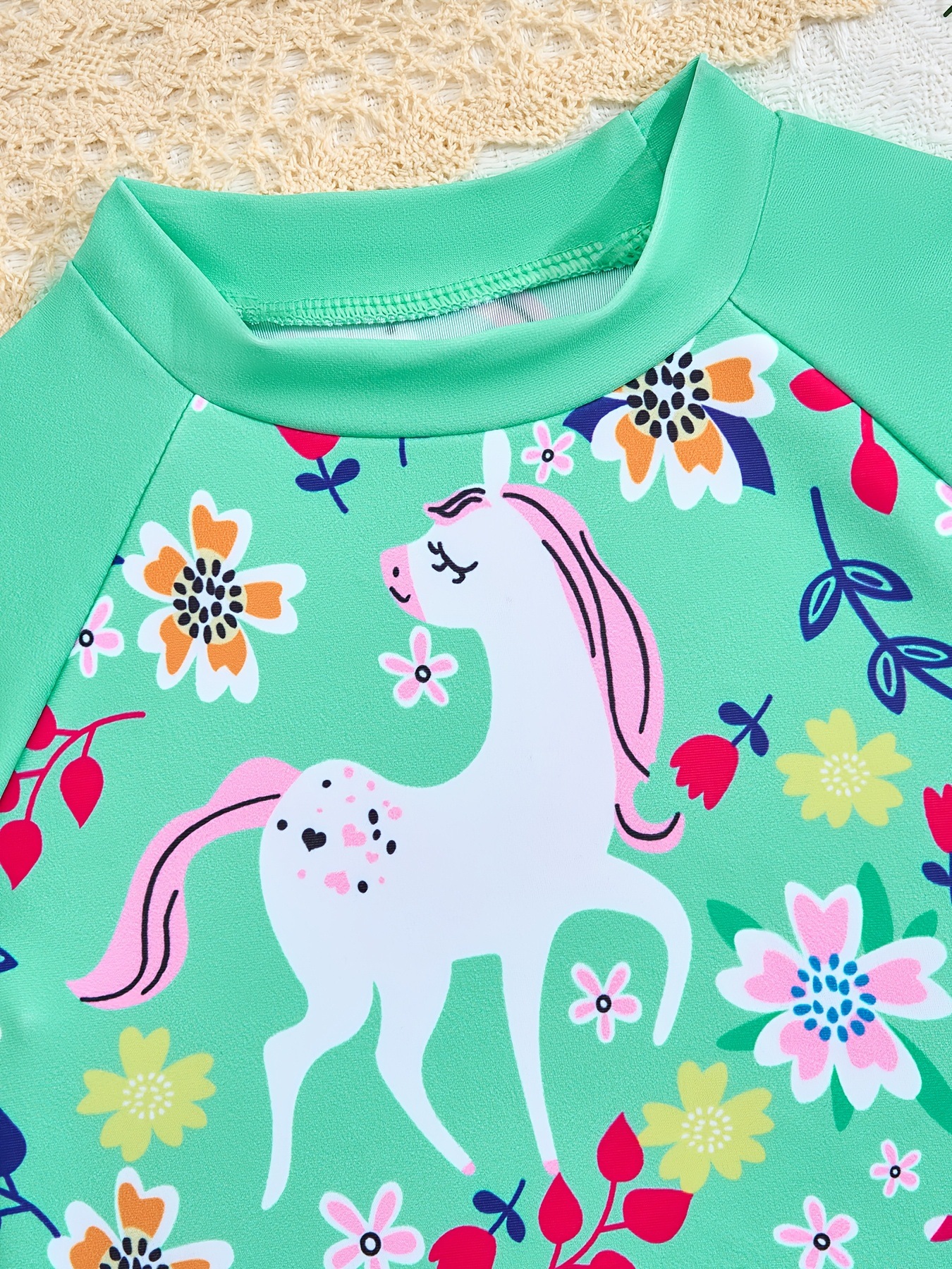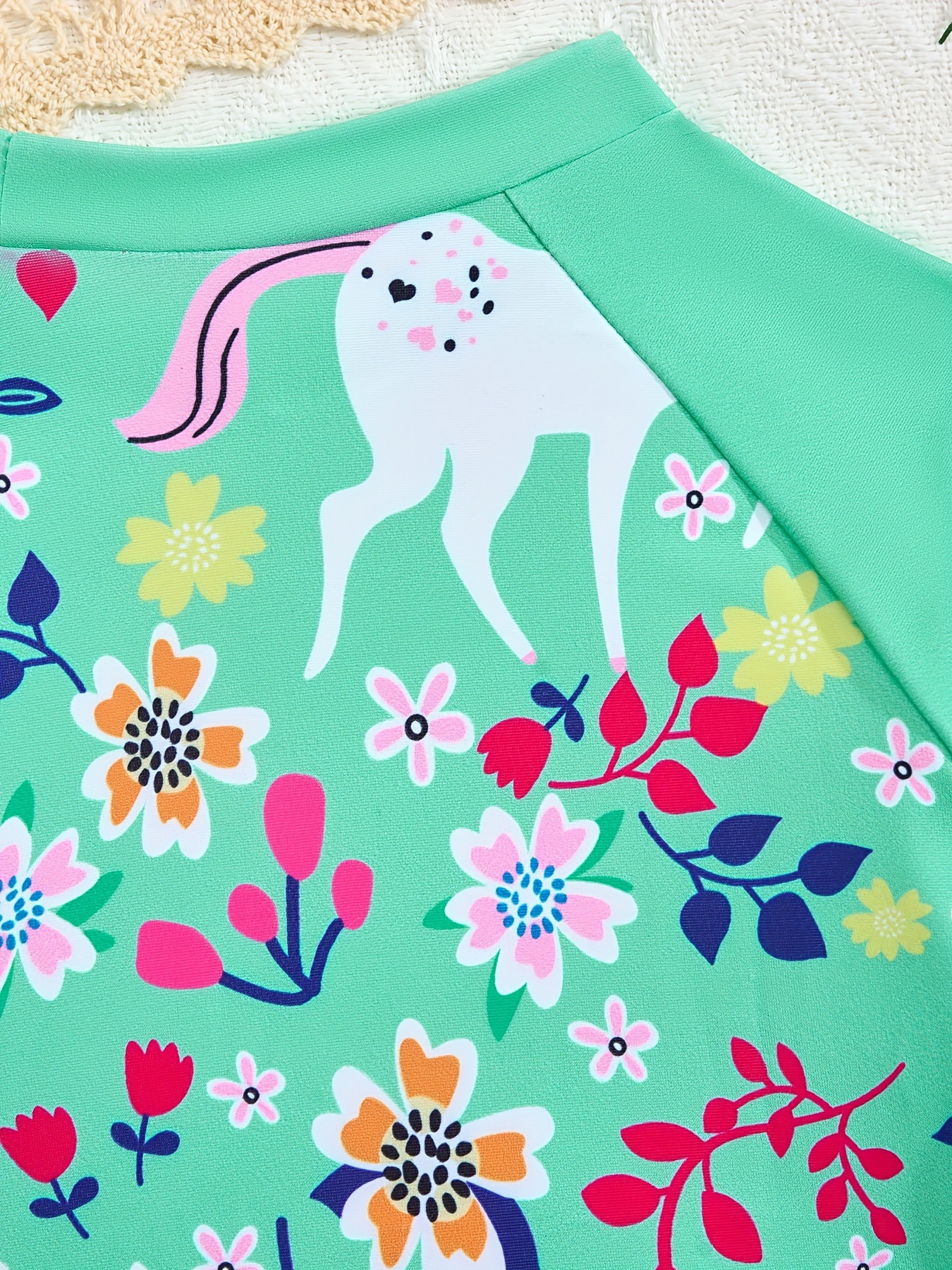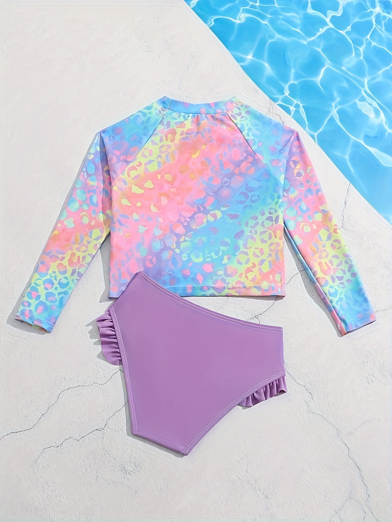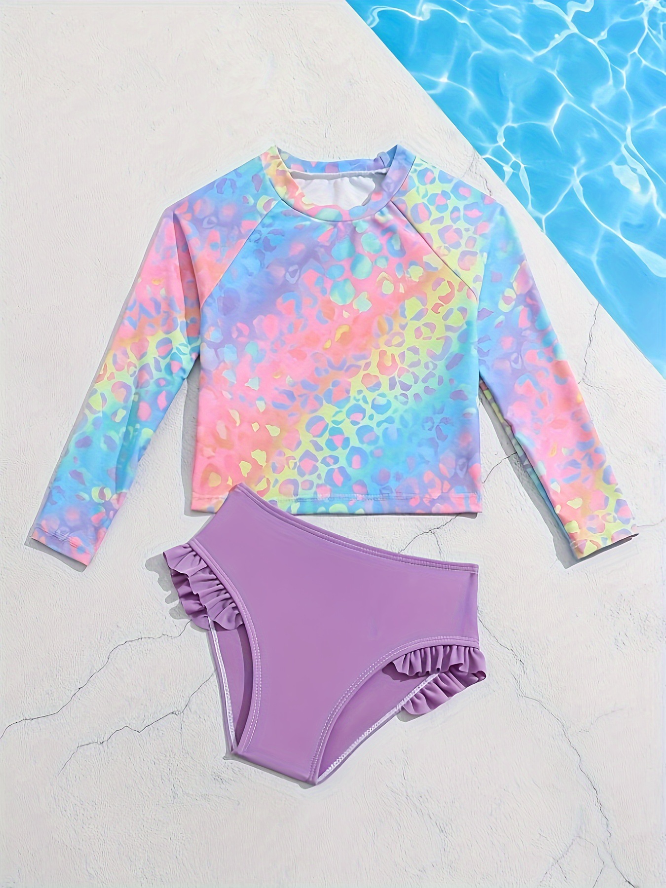 어린이용 분리형 수영모, 수영복, 긴팔, 신상 여아 비키니, 유아 및 어린이용 프린트 자외선 차단 수영복, 유럽 및 미국 스타일