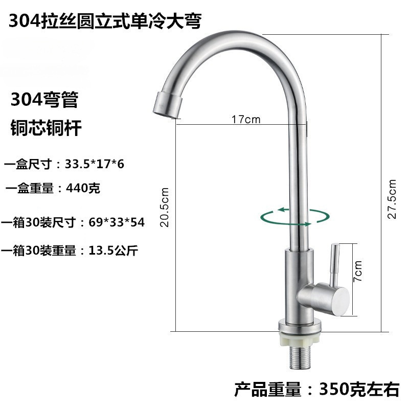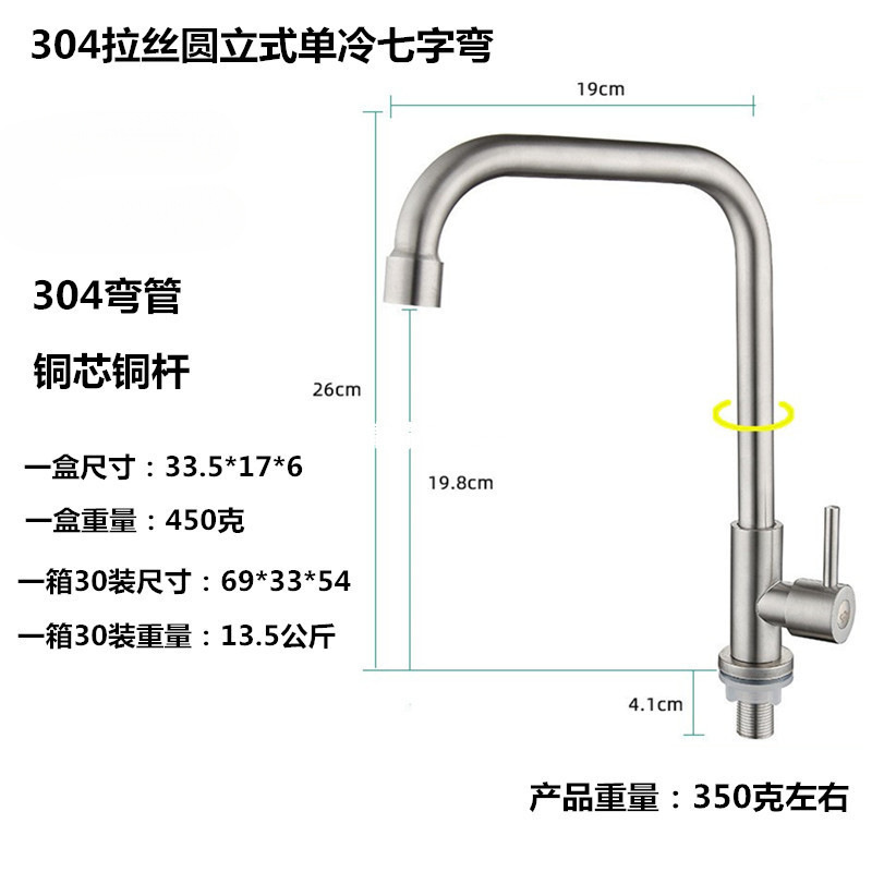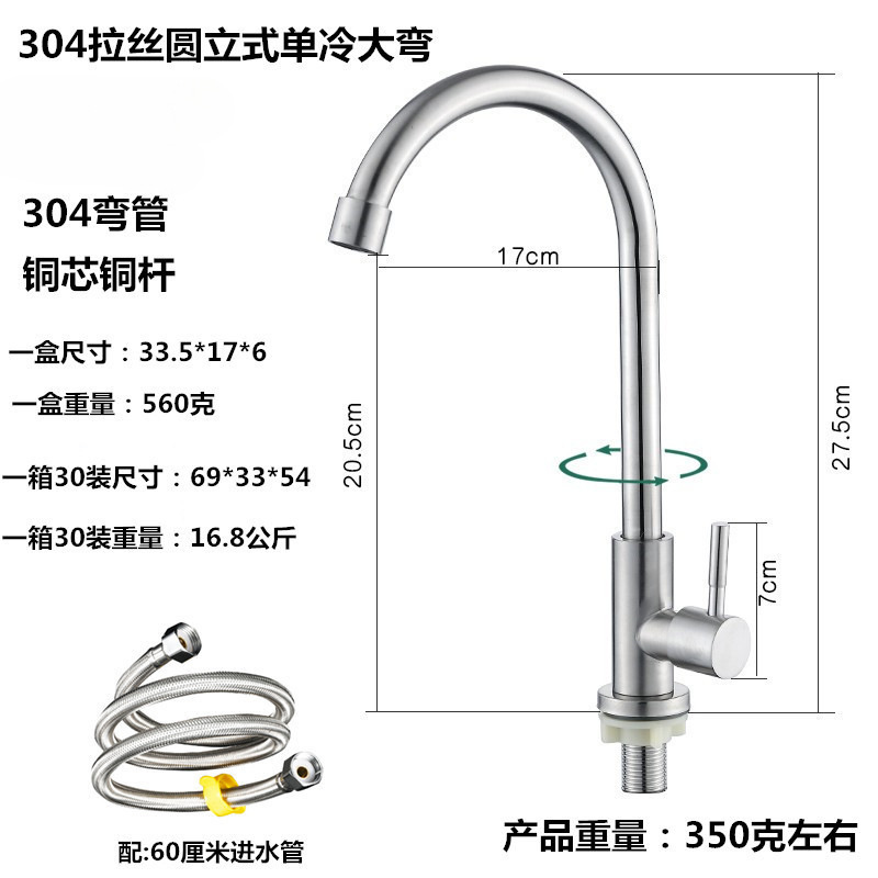 단일 튜브 180 수도꼭지 냉수 공장 직접 판매 대형 곡선 회전 주방 수도꼭지 발코니 304 스테인레스 스틸