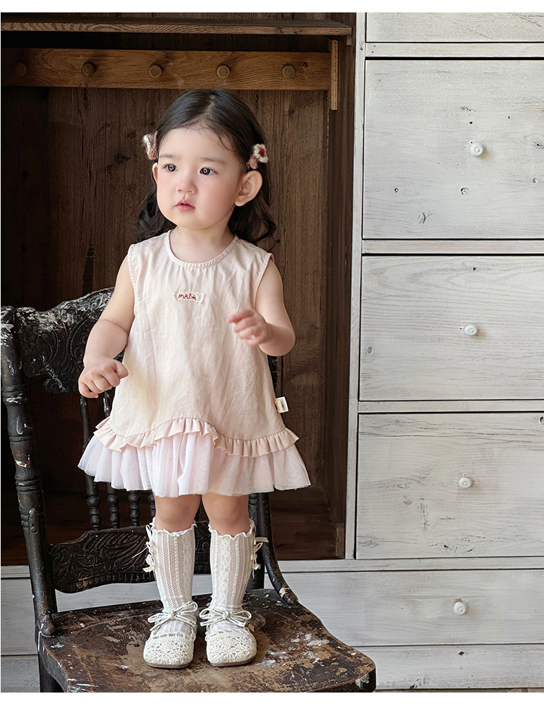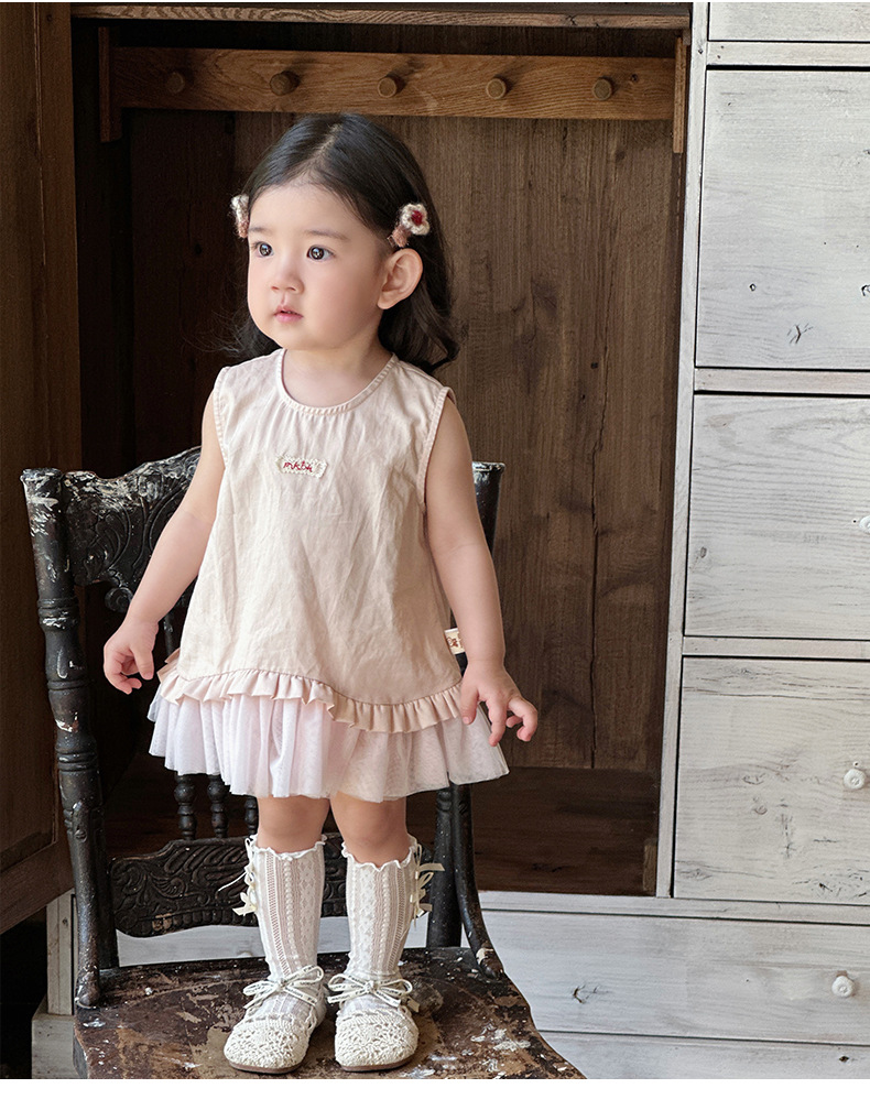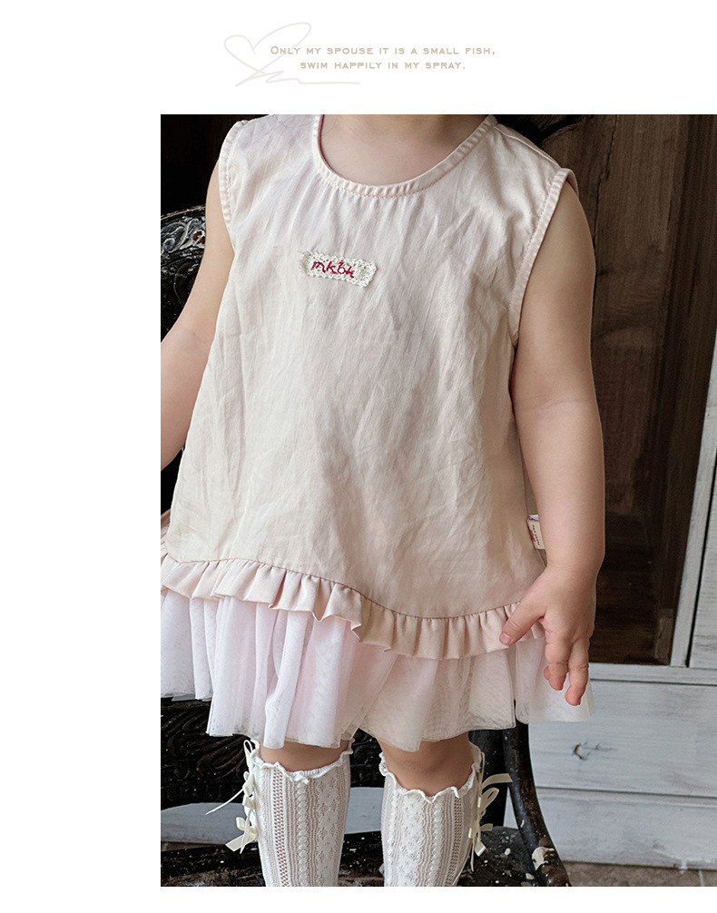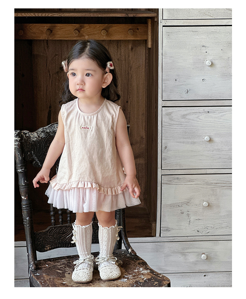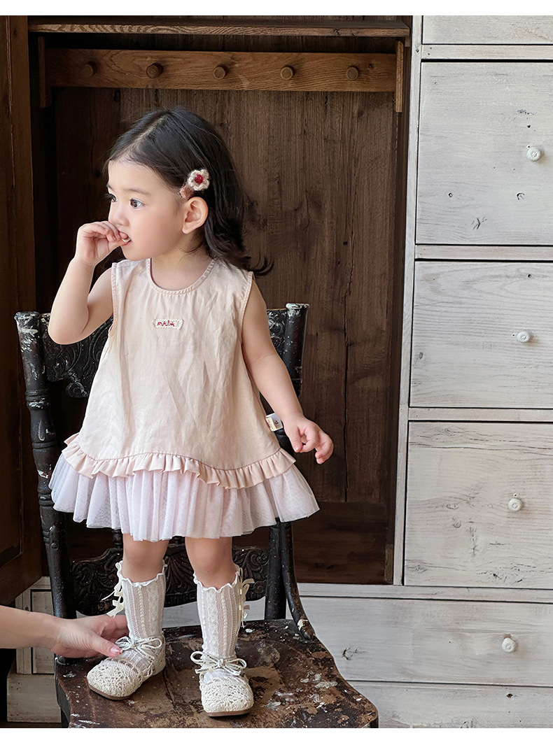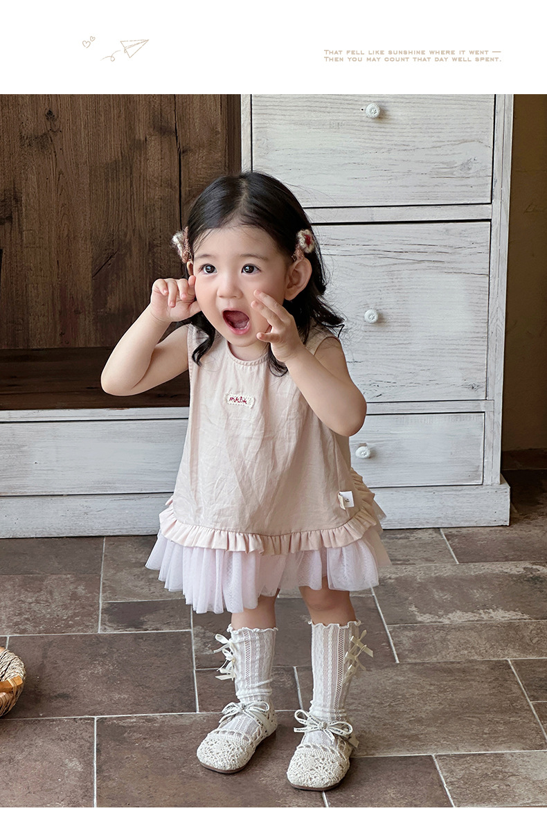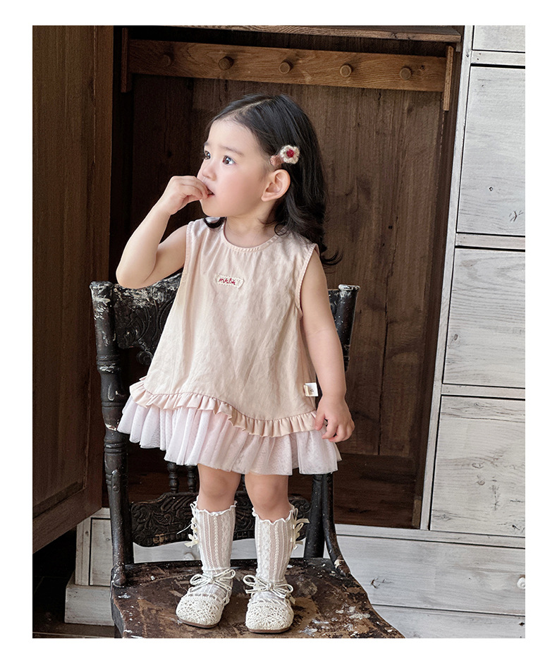 여자 원피스 여름 얇은 소녀 아기 소녀 공주 원피스 면 접합 가짜 투피스 민소매 조끼 원피스스토어 가기