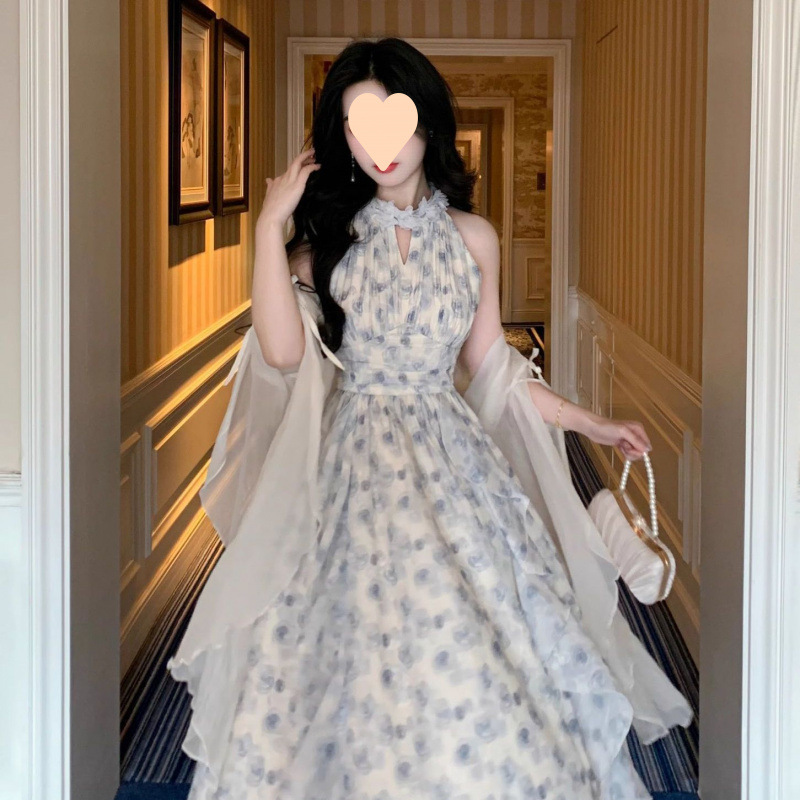 순수한 욕망 새로운 낭만적 인 어깨 프렌치 러플 원피스 여성의 봄과 여름 데이트 요정 원피스 세트 여성