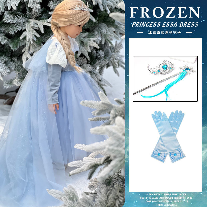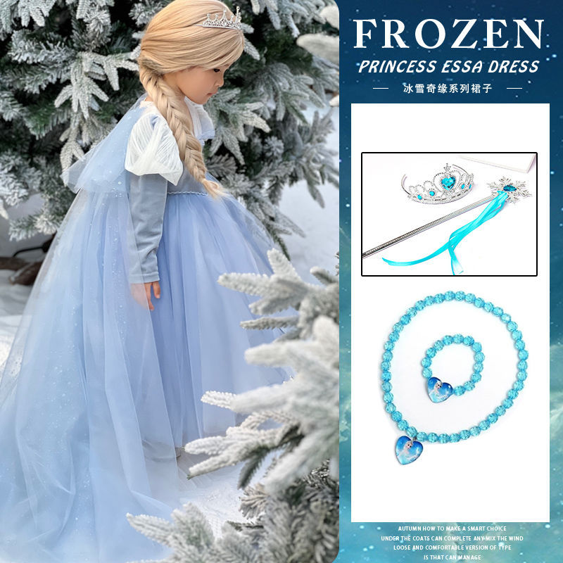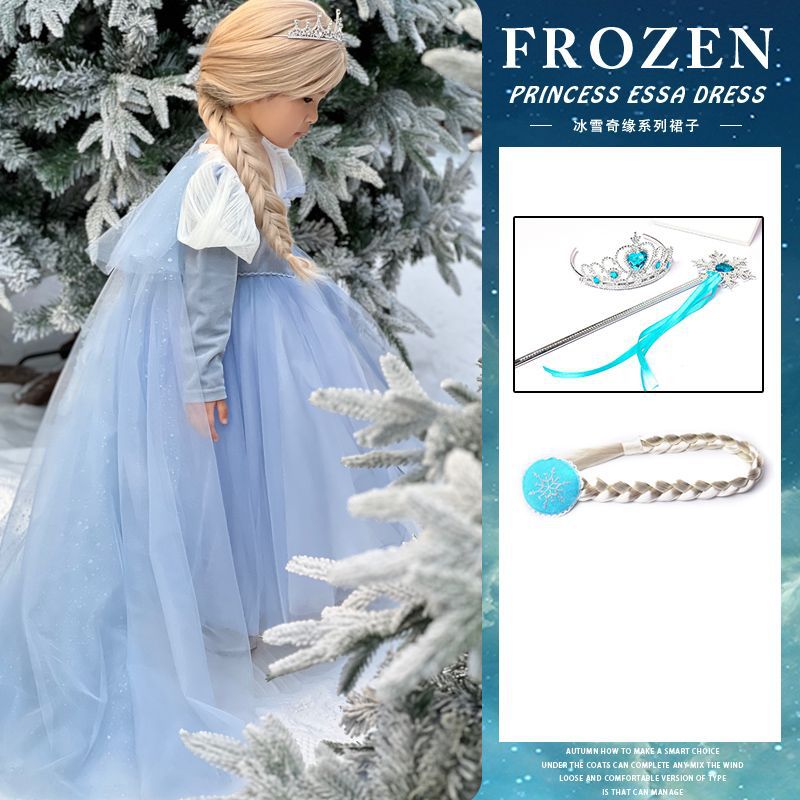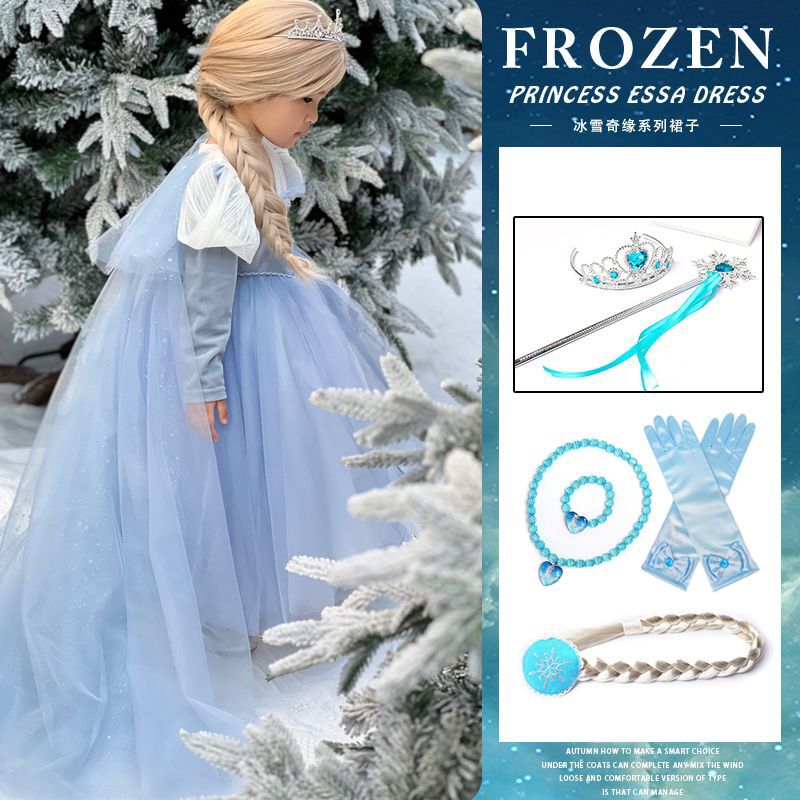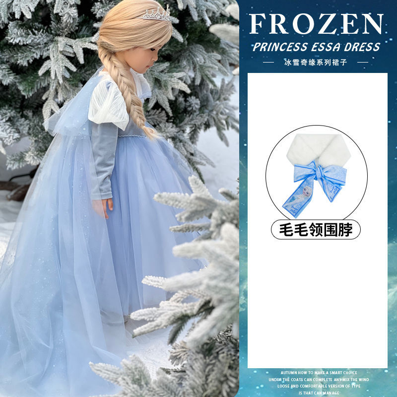 엘사 공주 드레스 소녀 가을, 겨울 망토 겨울왕국 엘사 어린이 빛나는 드레스 생일 드레스스토어 가기