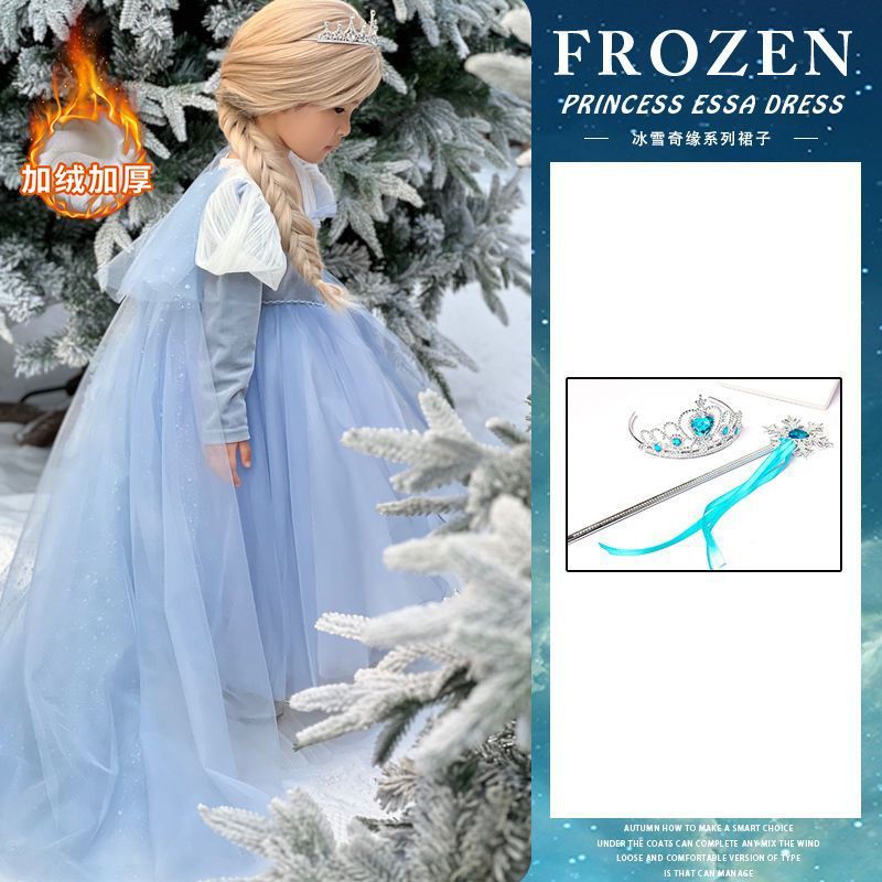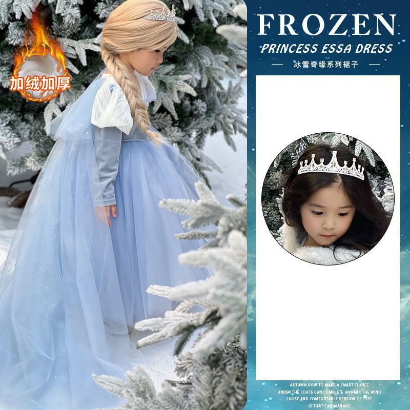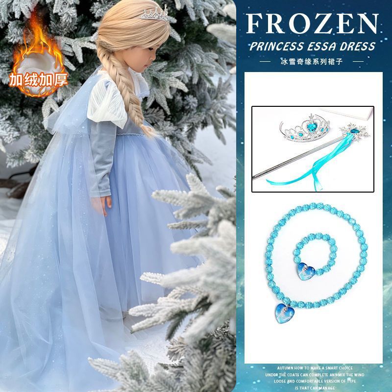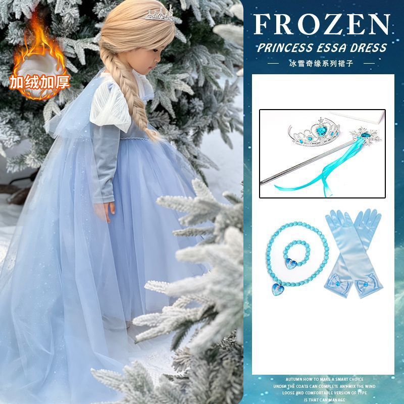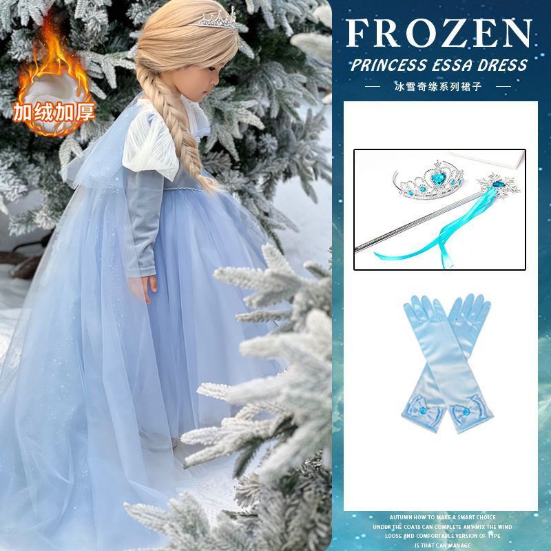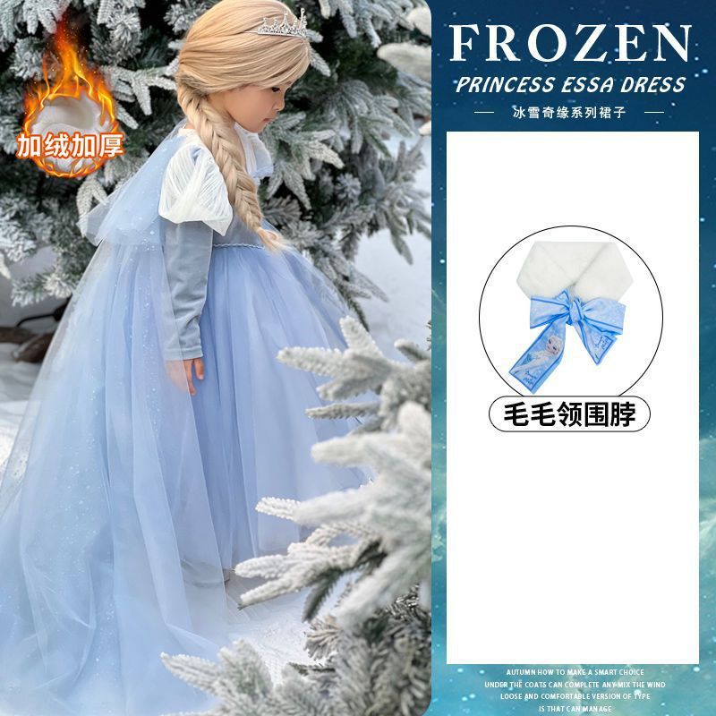 엘사 공주 드레스 소녀 가을, 겨울 망토 겨울왕국 엘사 어린이 빛나는 드레스 생일 드레스스토어 가기