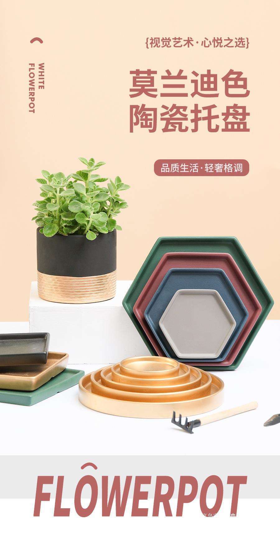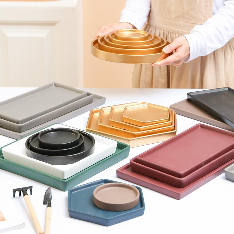 세라믹 베이스 화분, 사각형 원형 트레이, 직사각형 육각형 마름모 물받이, 누수 방지 황금 화분 베이스