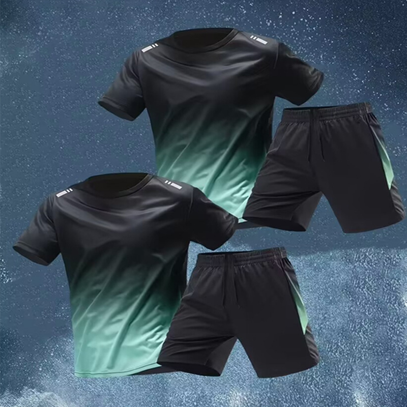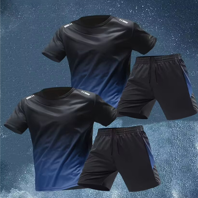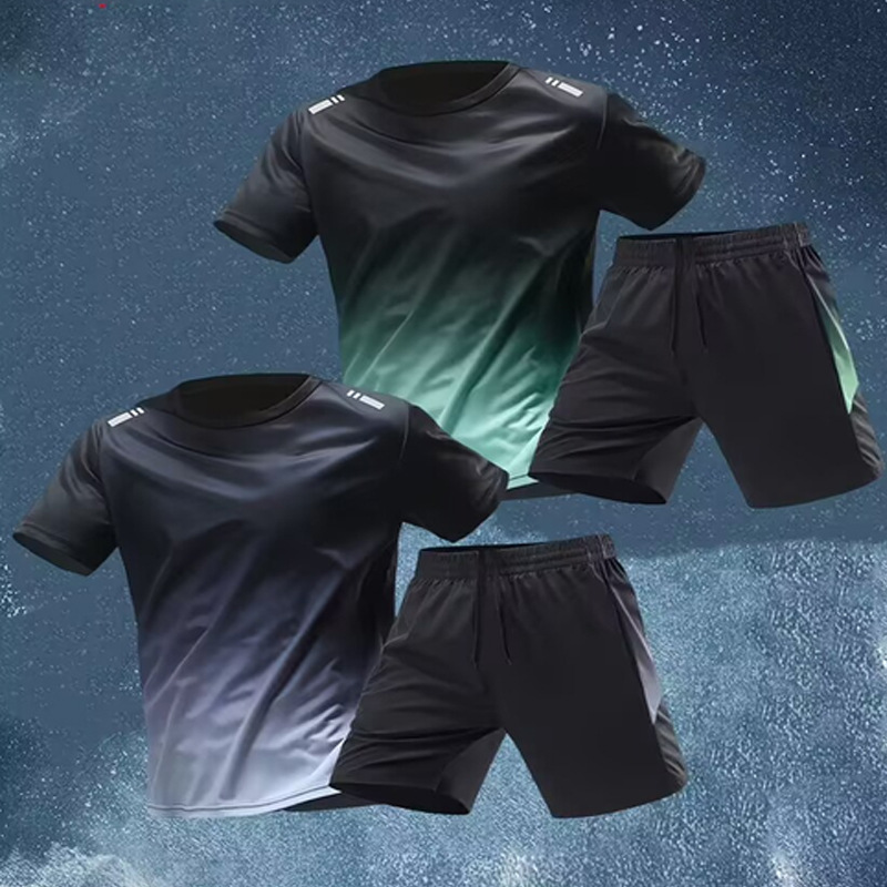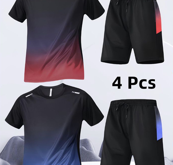 2 세트의 4 조각 아이스 실크 짧은 소매 세트 남성용 얇은 여름 트렌디 그라디언트 티셔츠 반바지 느슨한 캐주얼 투피스 세트