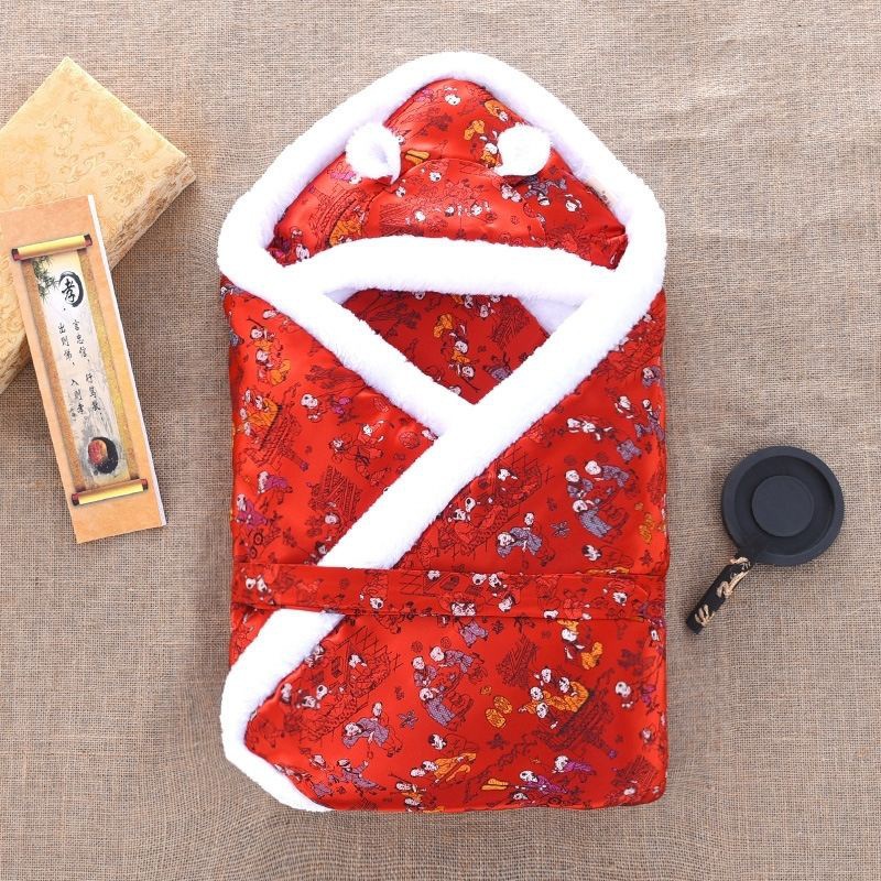 신생아 가을 겨울 중국 축제 두꺼운 빨간색 아기 아기 포대기 보름달 이불 백일 따뜻한 스타일스토어 가기
