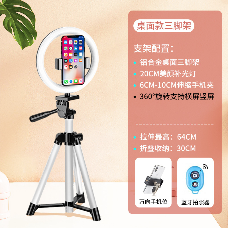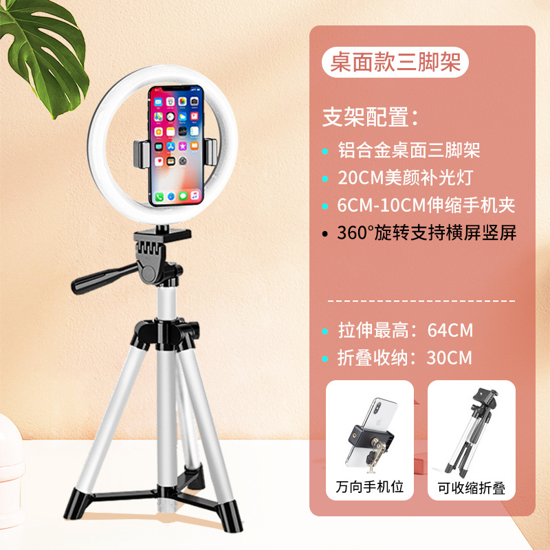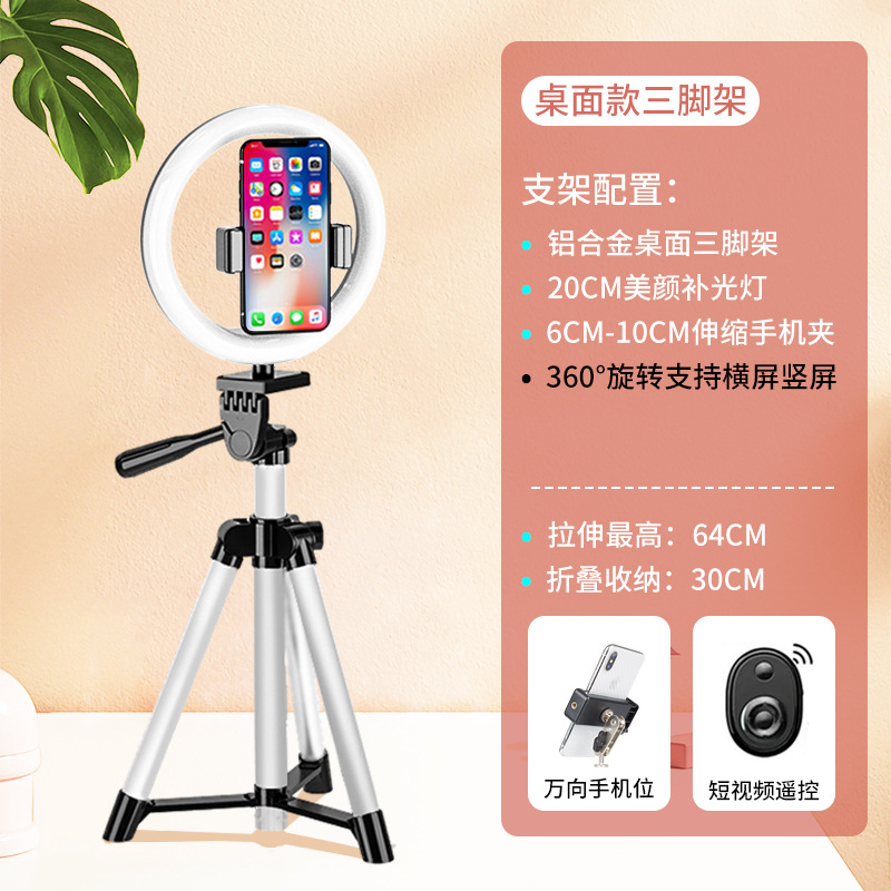 • [업그레이드 모델] 데스크탑 라이브 방송 스탠드 + 20CM 뷰티 램프 + 짧은 비디오 리모콘