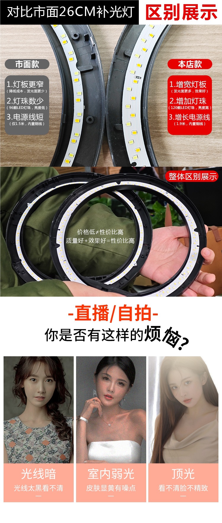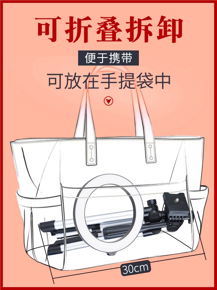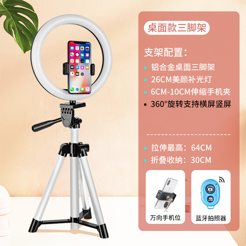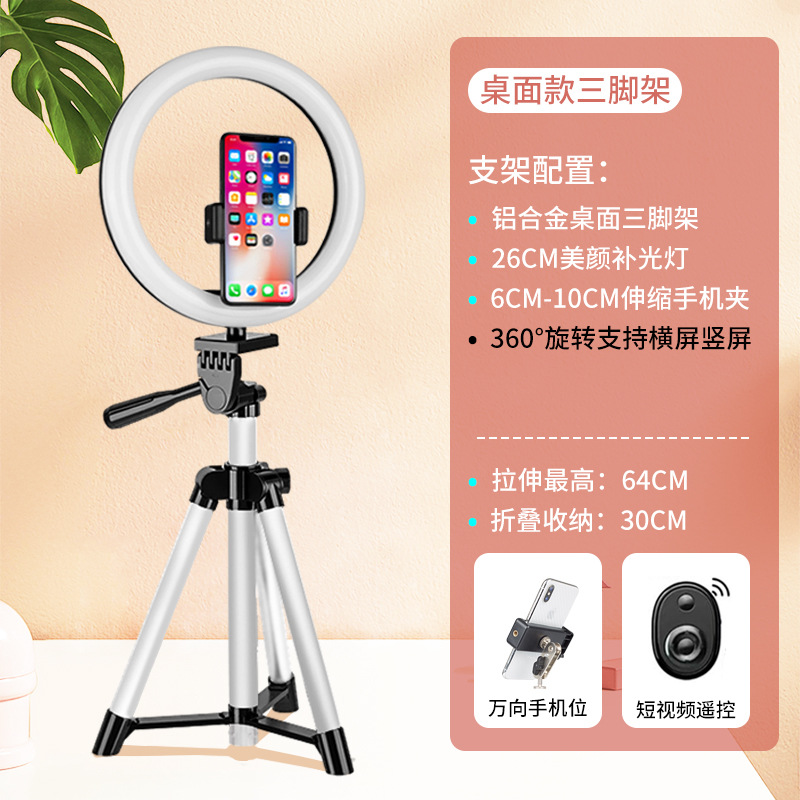 • [대형 업그레이드 모델] 데스크탑 라이브 방송 스탠드 + 26CM 뷰티 램프 + 짧은 비디오 리모콘