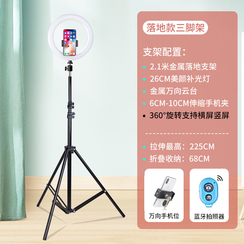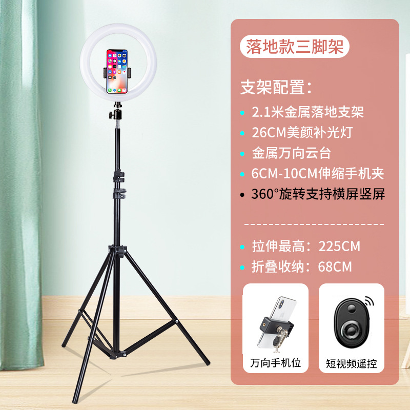 • 2m 라이브 방송 스탠드 + 26CM 뷰티 램프 + 짧은 비디오 리모콘