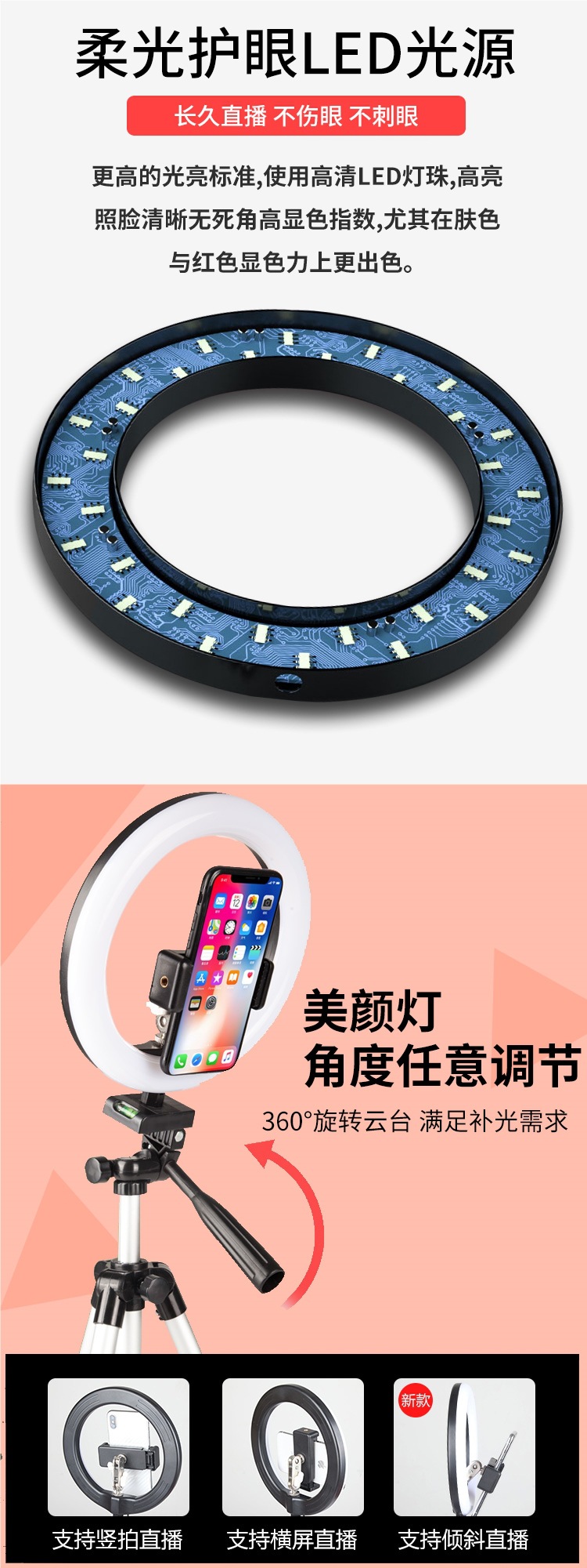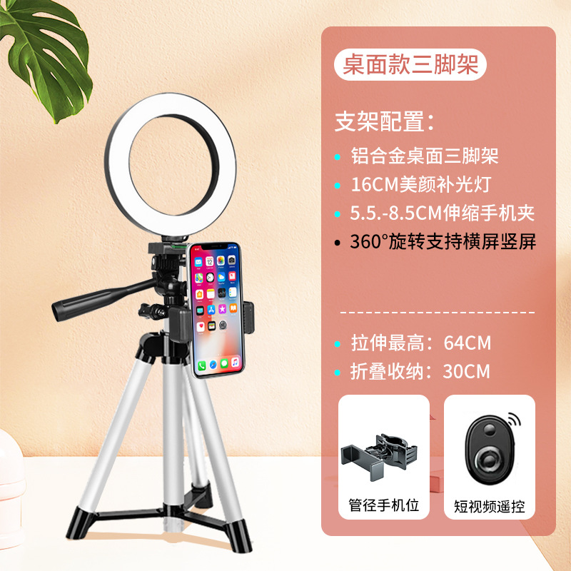 • [모델] 데스크탑 라이브 방송 스탠드 + 16CM 뷰티 램프 + 짧은 비디오 리모콘