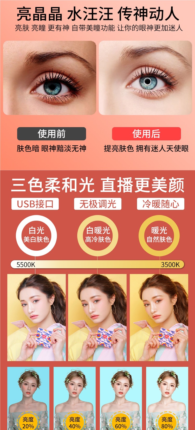 • 2m 라이브 방송 브래킷 + 20CM 뷰티 램프