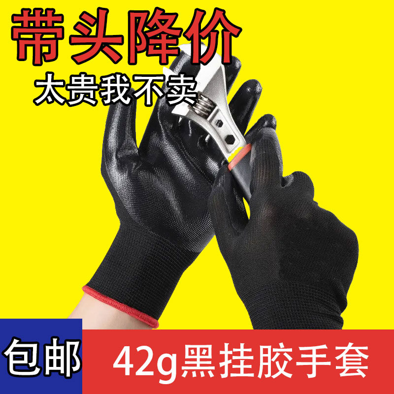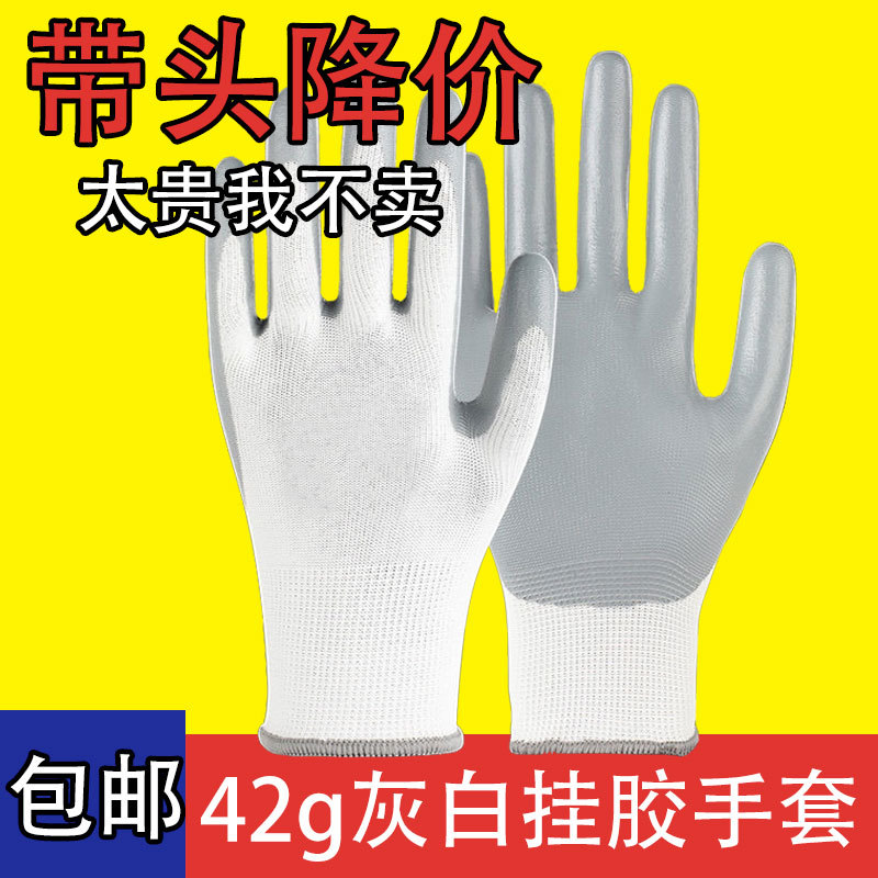무료 배송, 구슬 점용 고무 장갑, 작업용 노동 보호 장갑, 건설 현장용 플라스틱 장갑, 나일론스토어 가기