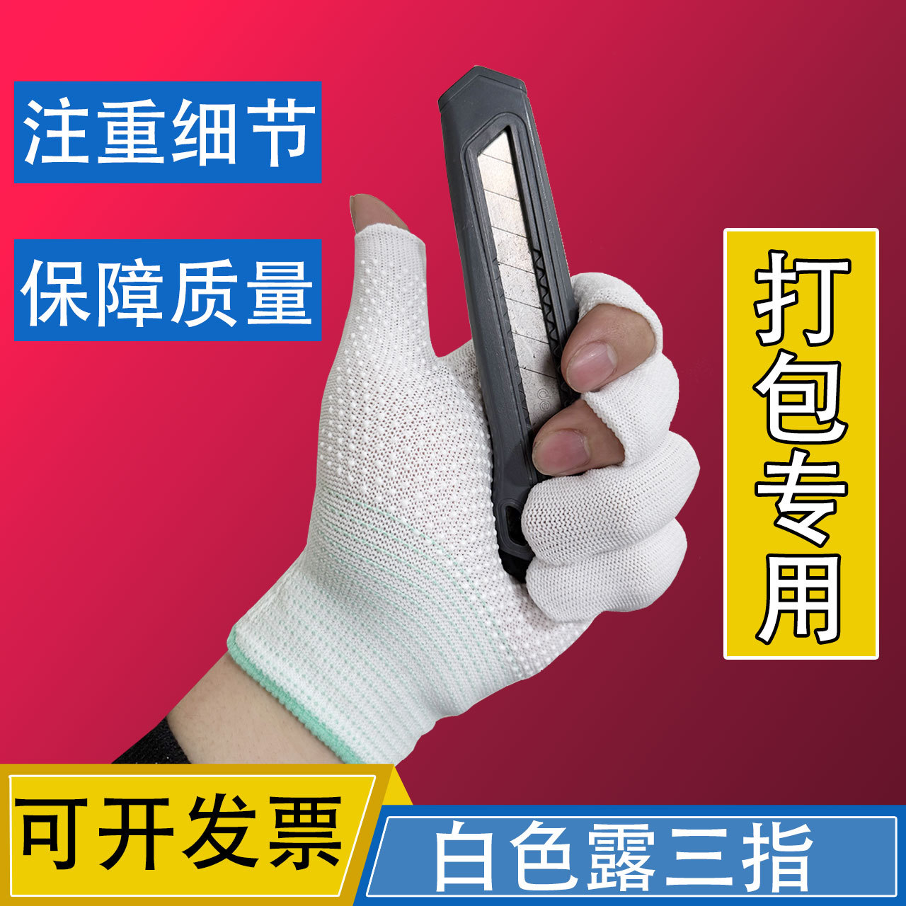 • 흰색 노출 3손가락 구슬 장갑 무료 배송