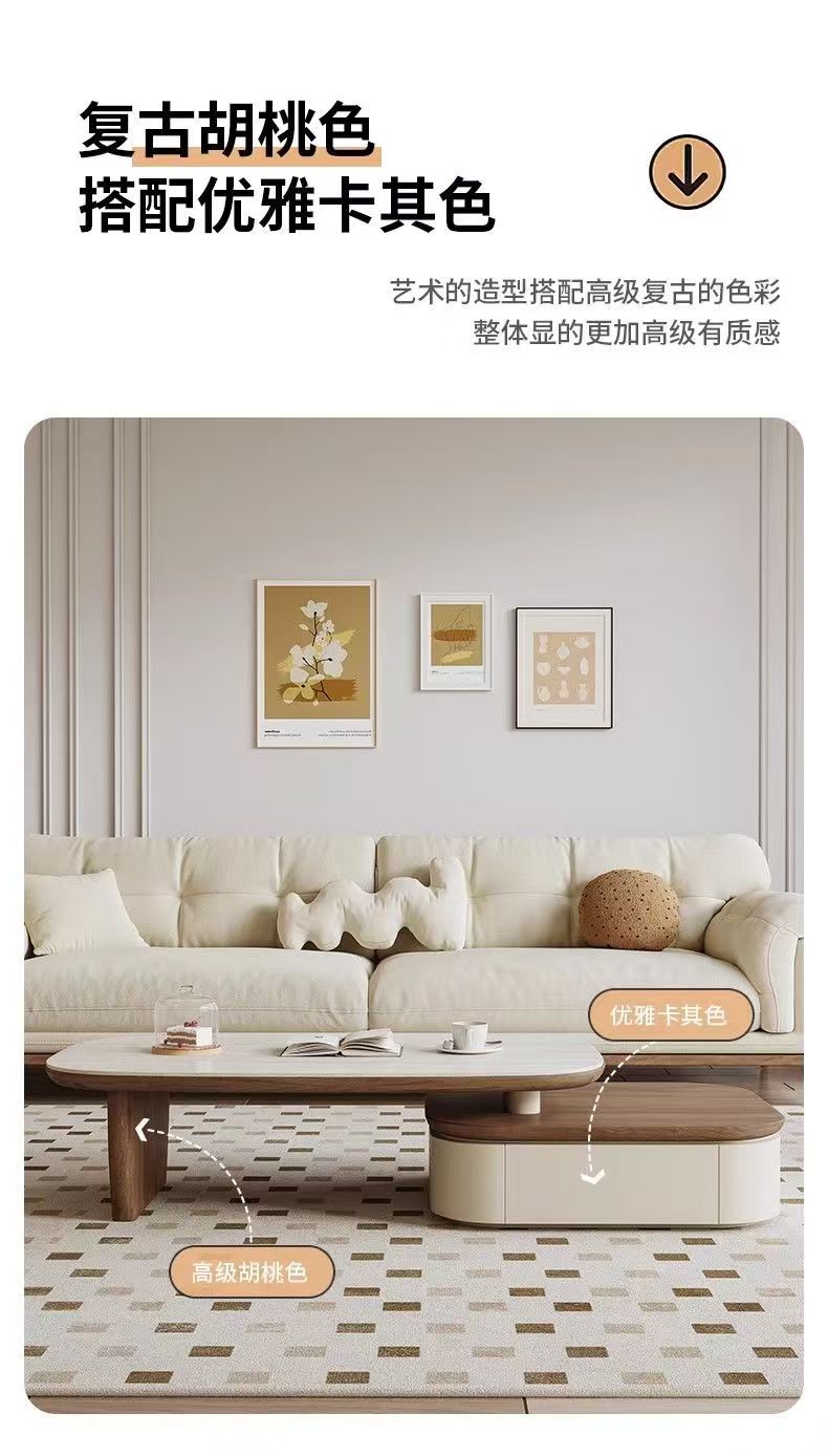 • [목재 베니어판] 텔레스코픽 커피 테이블 + 텔레스코픽 TV 캐비닛
