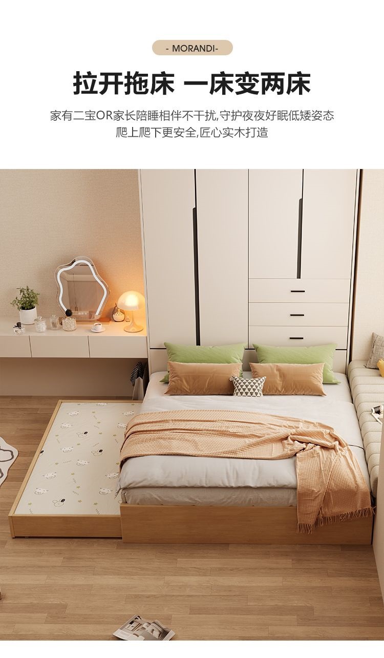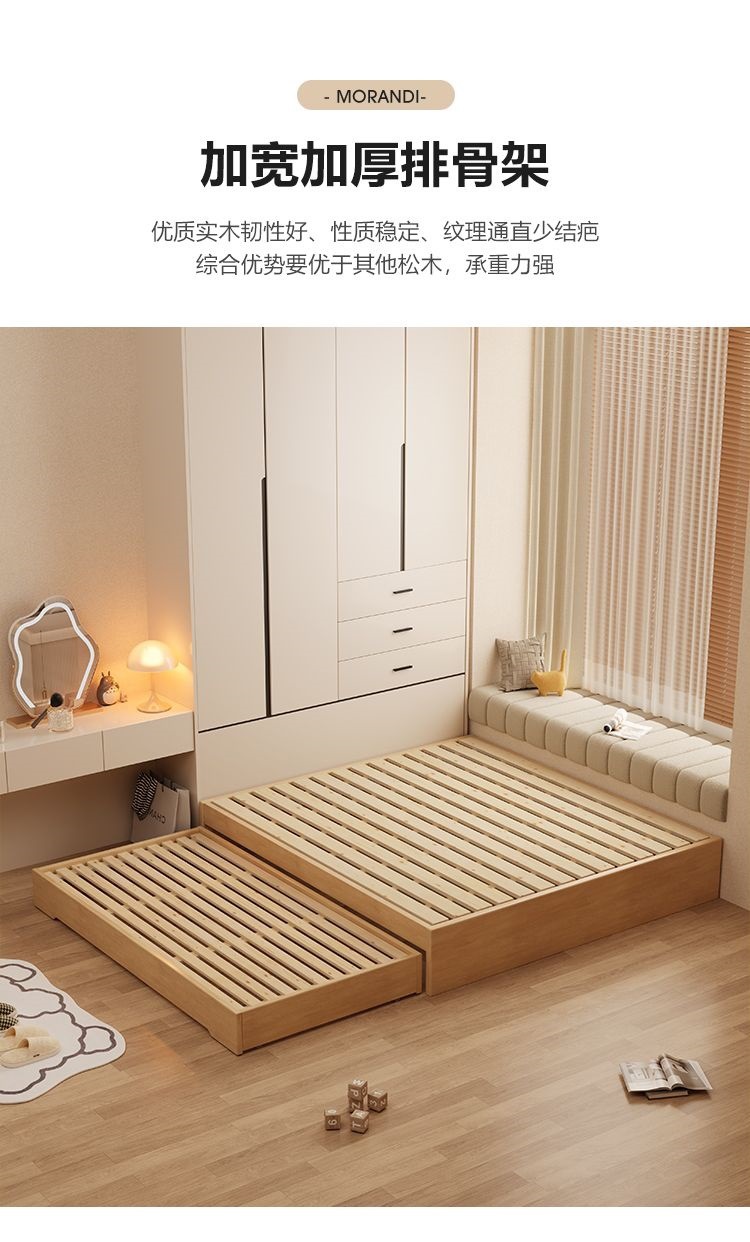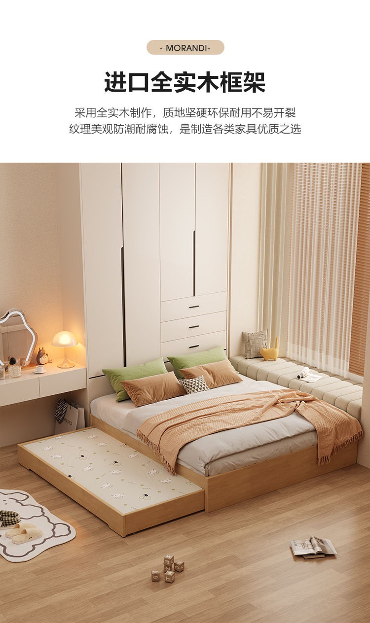 현대 간단한 단단한 나무 싱글 더블 침대 1.35 m1.2 m 가정용 저장 침대 1 m 풀아웃 어머니 침대 견인 침대스토어 가기