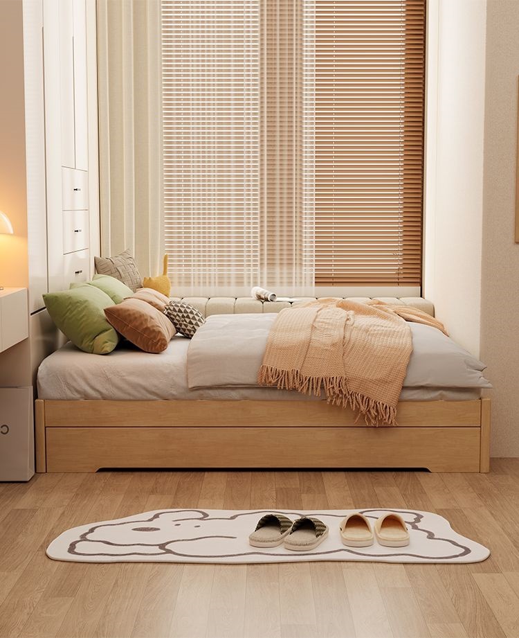 현대 간단한 단단한 나무 싱글 더블 침대 1.35 m1.2 m 가정용 저장 침대 1 m 풀아웃 어머니 침대 견인 침대