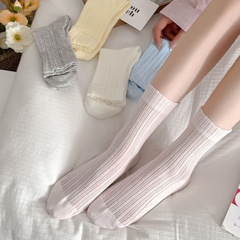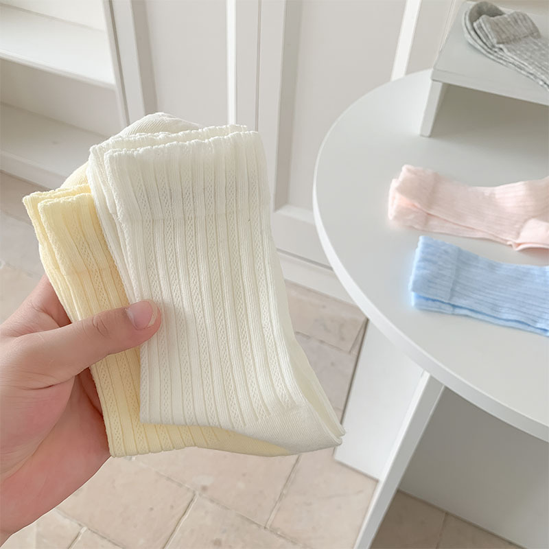 여름에 작은 가죽 신발과 함께 착용하는 여성을 위한 한국식 중공 메쉬 통기성 흰색 양말 발레 스타일 소녀 양말