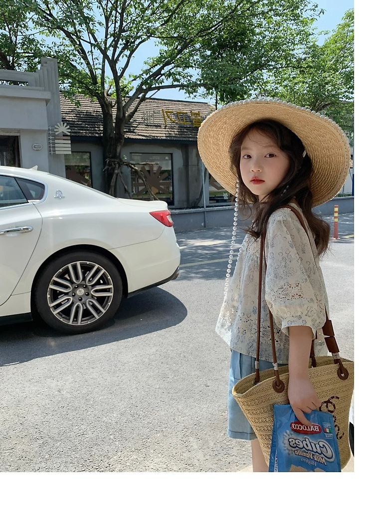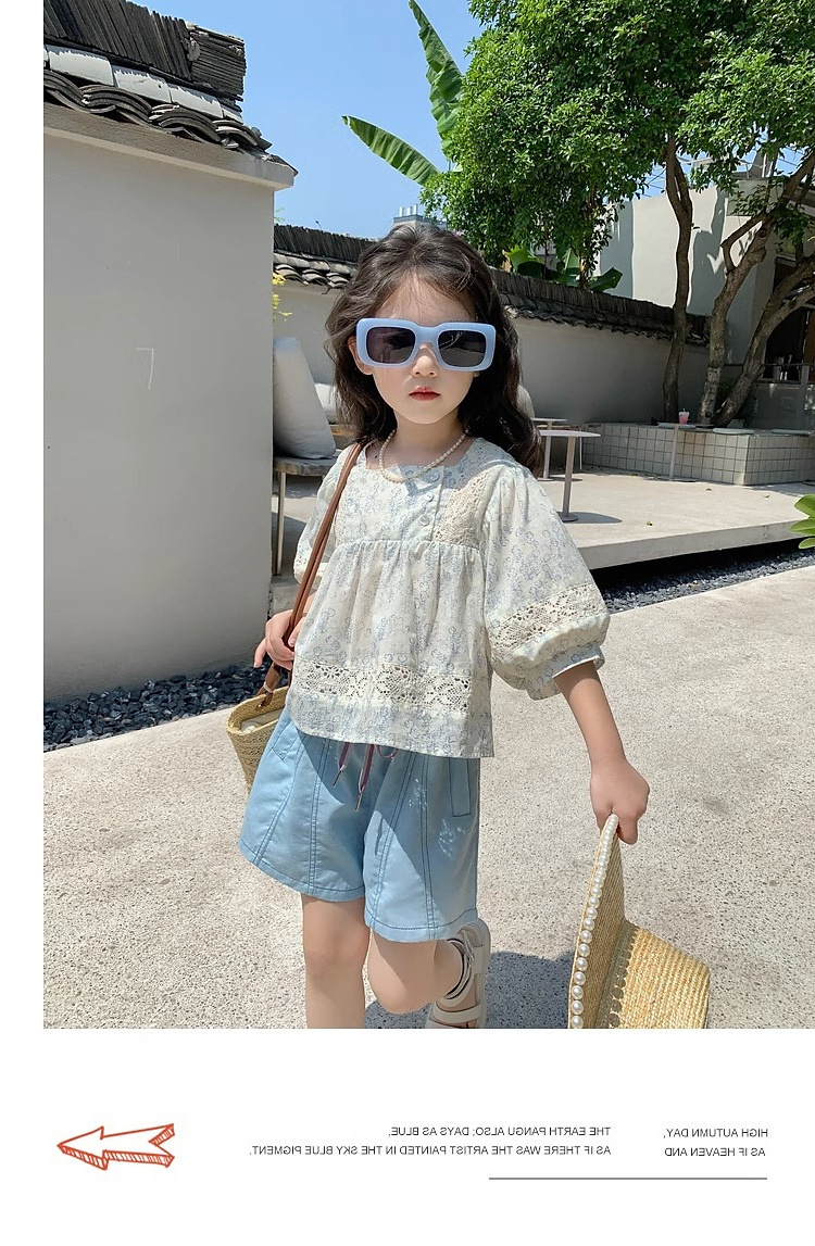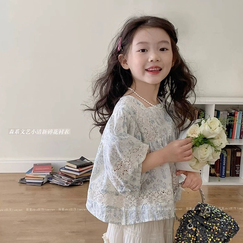 여아 셔츠 아동용 2025 새로운 봄 여름 프랑스 패션 캐주얼 다용도 레이스 꽃무늬 셔츠스토어 가기
